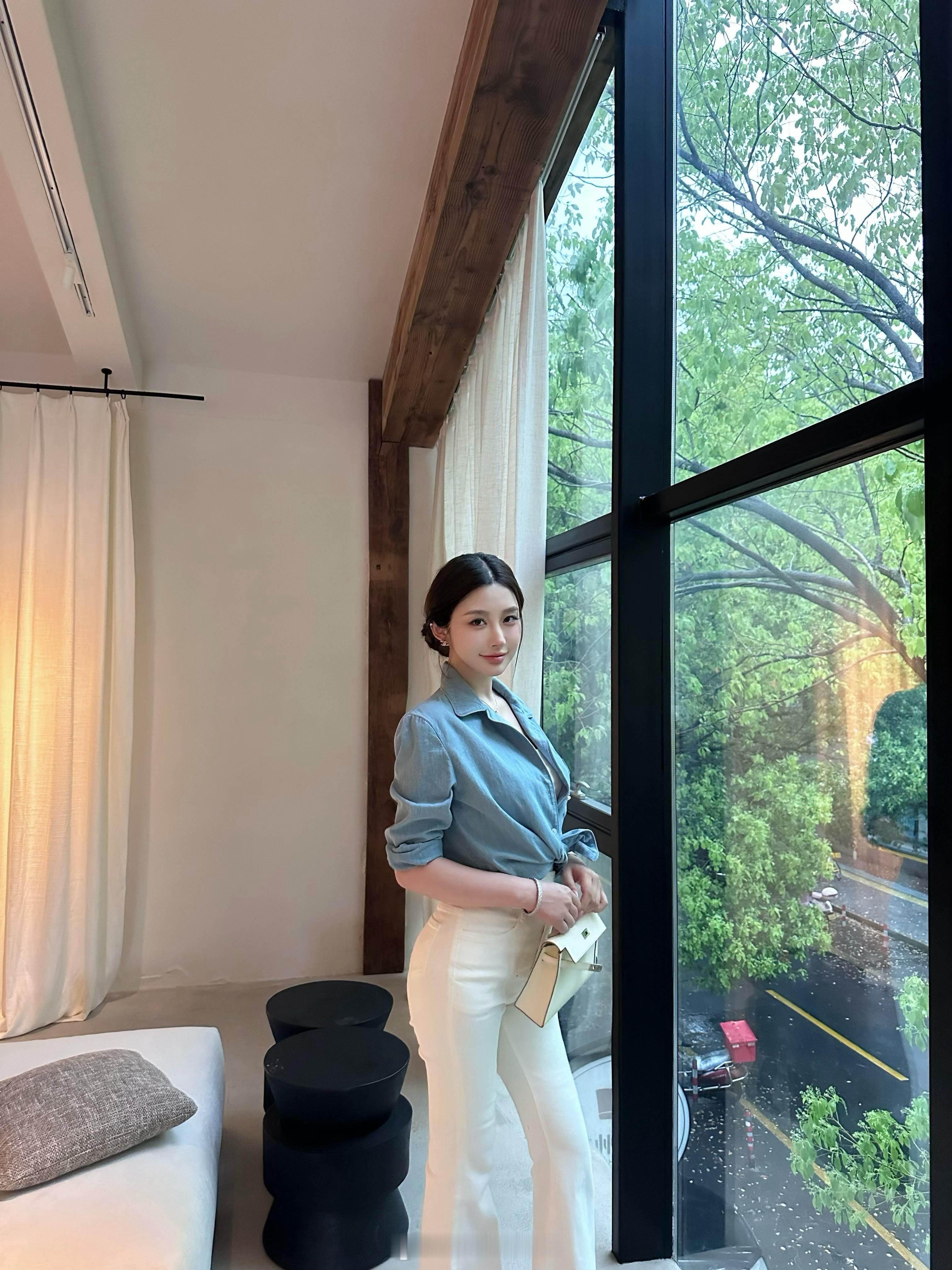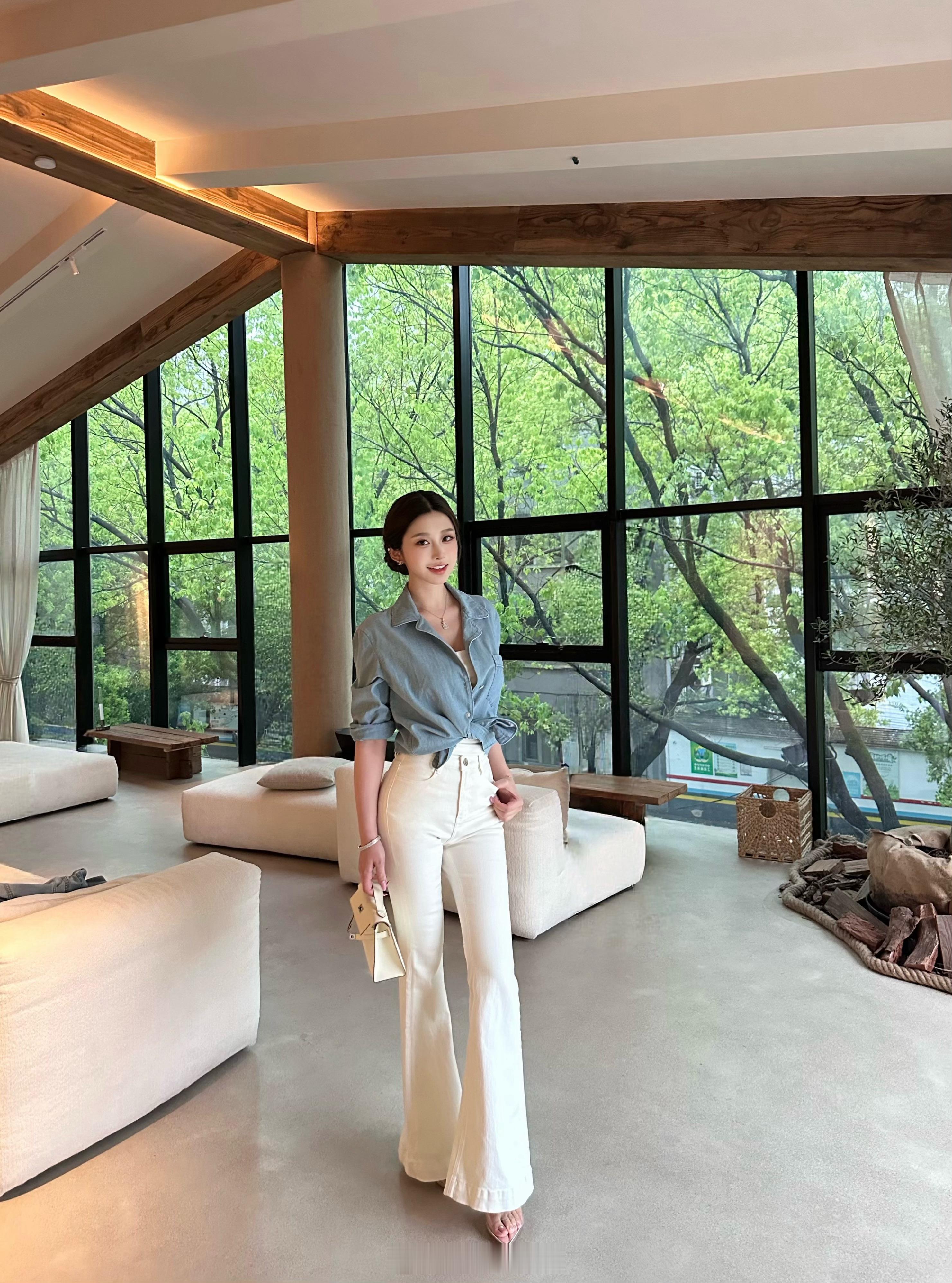 被刘雯这身机场穿搭狠狠种草!娃娃领针织衫+白衬衫,温柔又减龄,阔腿牛仔裤+乐