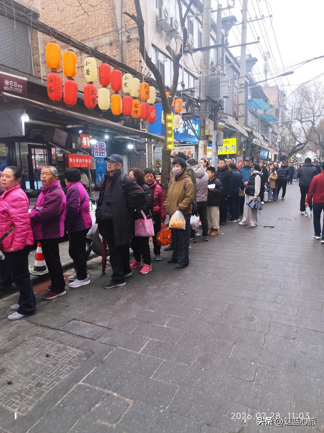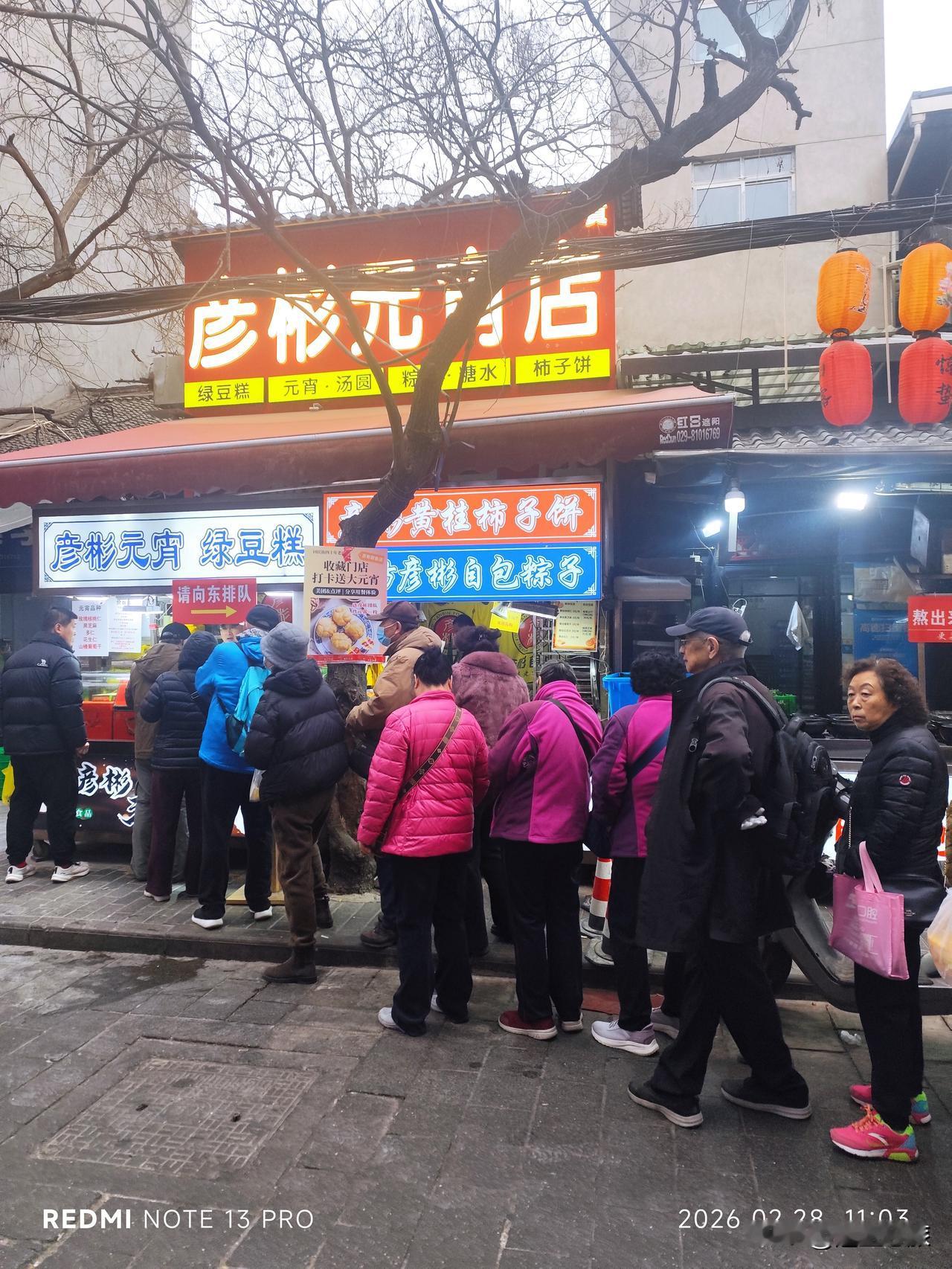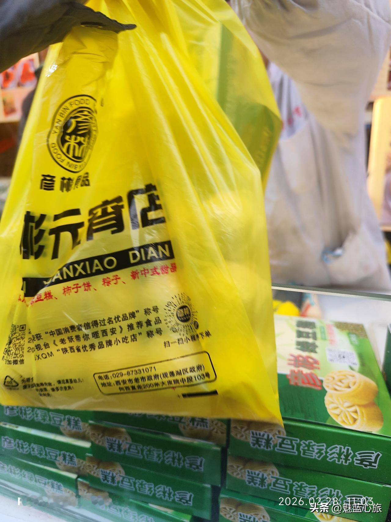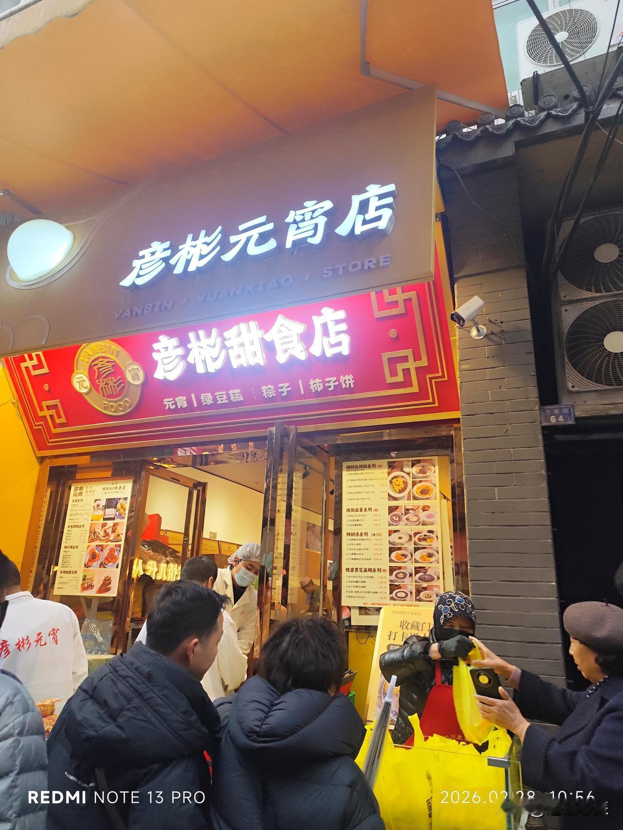 在西安美食街回民街的大皮院,每到元宵节,就有一支靓眼的排队队伍,就是这家元宵店了。 其实在节日的前夕,就已经大排长龙。几天前我也来凑热闹,看到在街的面对面他家有两个摊位,一个排的很长的是店面,另一个应该是“工厂”吧,也是门前人头攒动。 一筐筐白胖胖的元宵,被抬到店面,这种现包现卖的手艺,既是烟火的传承,也是长安人对元宵的记忆情节~ 队不能白排,本来我只买元宵,又追加了绿豆糕,他家还有粽子和黄桂柿子饼... 买回家就迫不及待地下了吃,看起来有点生硬的元宵,煮熟了以后似乎翻了一倍大,口感软糯细腻。 和我之前在太原品尝的老鼠窟元宵相比,虽地域不同、风味各异,都是对“团圆”的美好期许。 今天是元宵节,正月十五的一碗元宵,是少不了的仪式感,一家元宵老店,是历年的味觉记忆,带着古城的温婉,也是烟火气的生动注脚。 回望回坊上彦彬元宵摊位前的队伍,依旧绵长。这条街上,也满是拎着黄色元宵袋子的人,这一份甜糯,是年的味道,也是西安老饕们心照不宣的默契。 俗话说,过完十五年就过完了,不过岁月静好,家人闲坐,灯火可亲,碗里有甜,心中有暖,是家人长久的期盼...