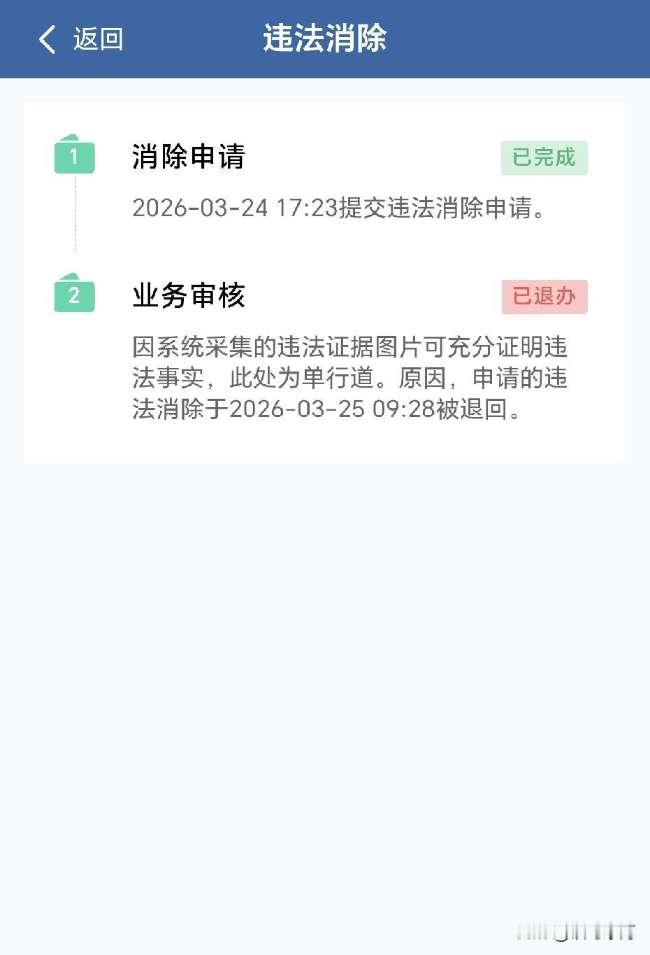 在德州的交通违章申诉被退回,罚款还是交了,这回应了大伙的心了吧。[捂脸] 其实那天我是带家属去市立医院看病,进德州过了地道桥应该靠右行驶右拐,但是我拐晚了停在了直行路上,所以起步后看到有路口就右拐,没注意那是条单行道。 这条路走到头正好是市立医院门口东侧,路上也看到有车在向南行走,所以认为可以走了。而且3月21日的违章,24日晚上才收到信息,有点反应不过来。 打开12123看违章图片,显示由南向北,以为是在德百那条路掉头时拍的了。但是图片上明显是右拐,怎么由南向北呢? 打开高德地图查看违章地点,才明白是刚进德州错过第一个路口,赶紧在下一个路口右拐导致。