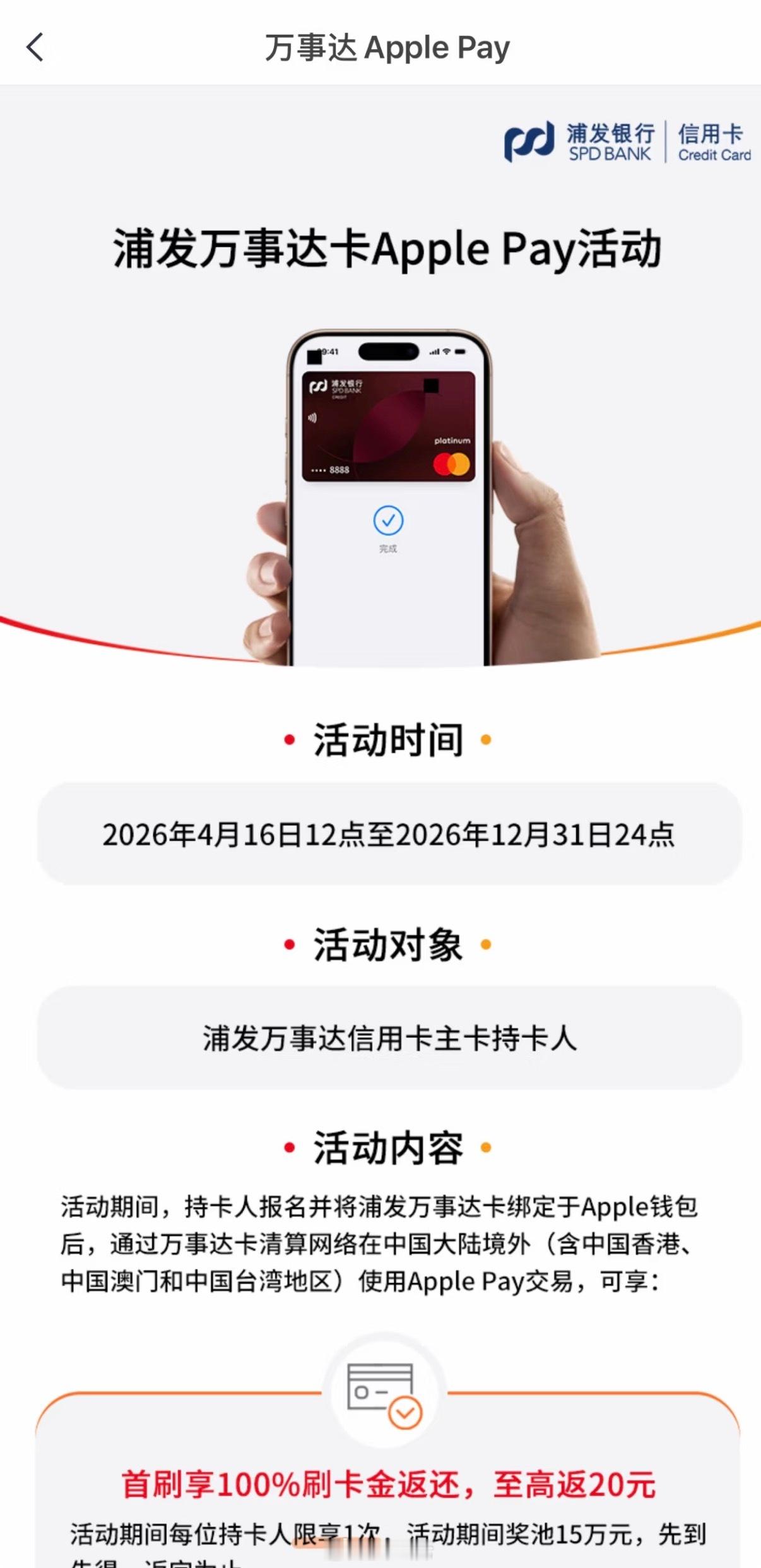 来了!目前看到,中行,农行,中信,浦发银行直接上架万事达卡绑定Applepay宣传活动时间是4.16中午开始,也就是说明天上午中国内地发行的万事达卡就可以绑定Applepay了! 深圳·华润前海中心
