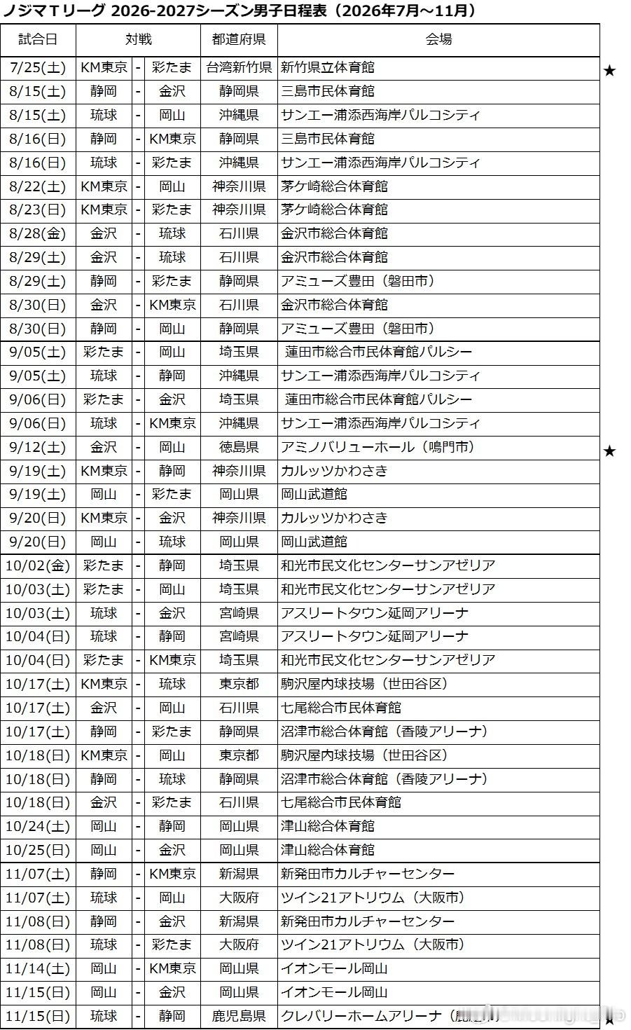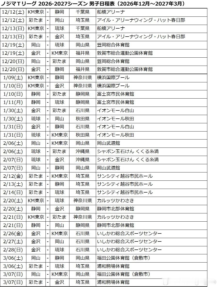 T联赛2026-2027赛季的比赛日程已经决定