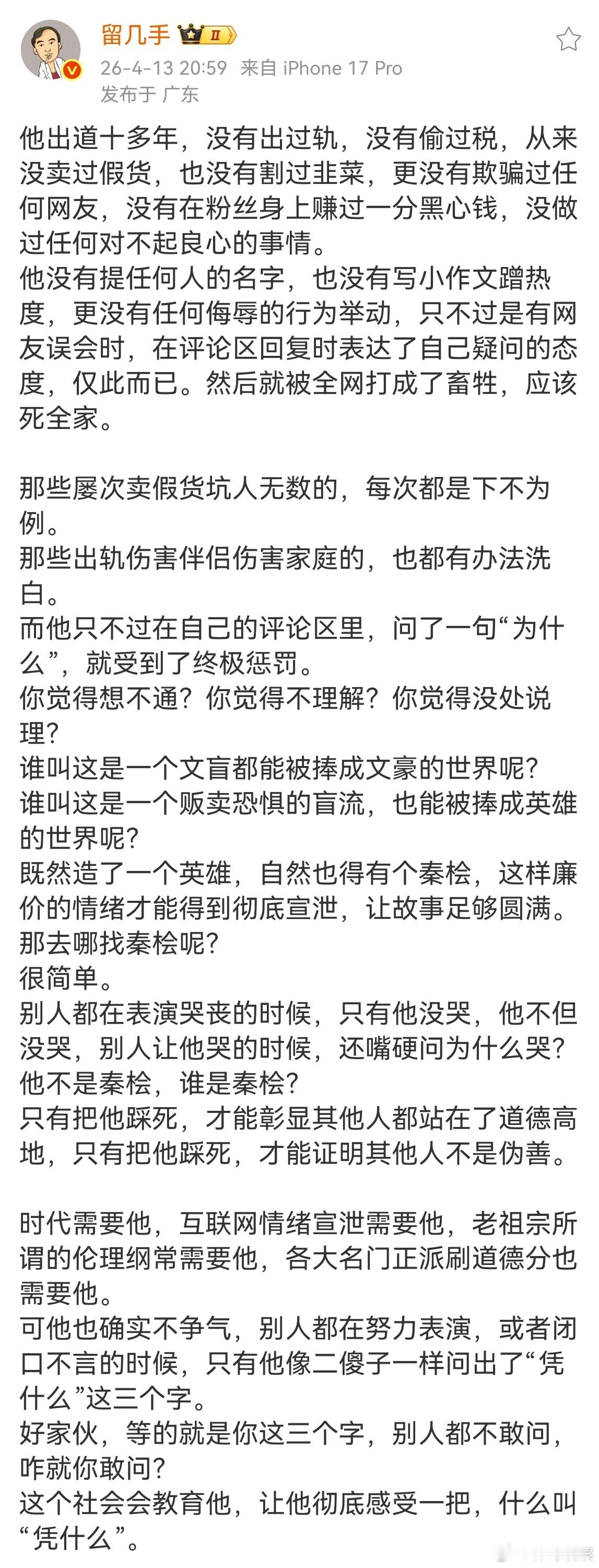 这个留几手,为什么就非得抖逝去的人机灵嘛,犯了错帐号被禁言,现在又出来微含沙射影骂人。做错了事还在这里扮可怜卖惨,还说没有任何侮辱行为,真是死性不改啊!正如一个网友的评价:张雪峰不仅没有贩卖焦虑,而是努力帮大家解决焦虑,但凡你多关注一些都能看得出他是个善良的人。而你,挺有趣,但也冷漠,做公众人物差点意思,做个小丑吧,适合你!