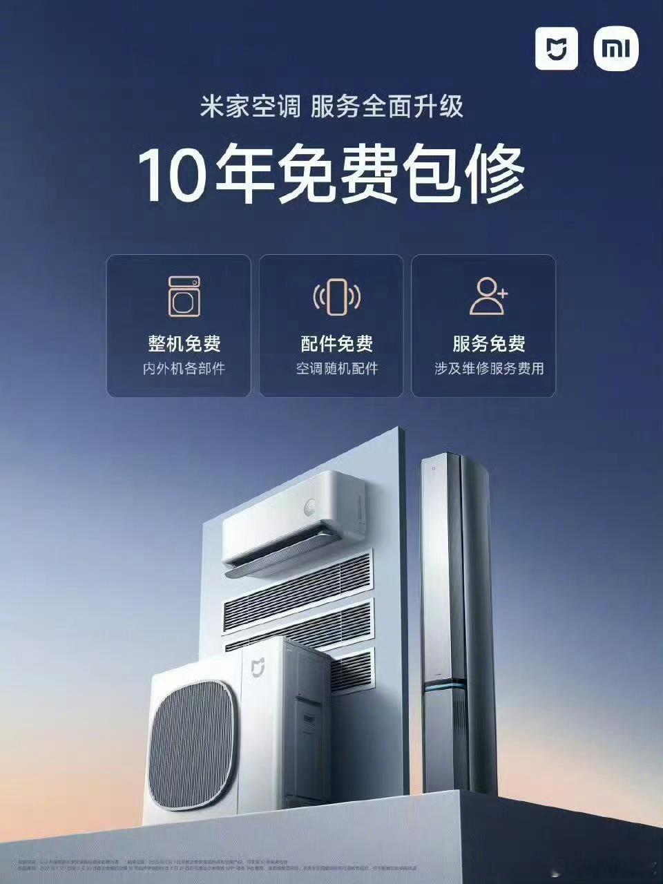 小米听了,闷声不响地跟了,还把免费包修的范围从挂机扩展到了中央空调。老大哥不喊了,但也没把中央空调放入十年免费包修的范围。