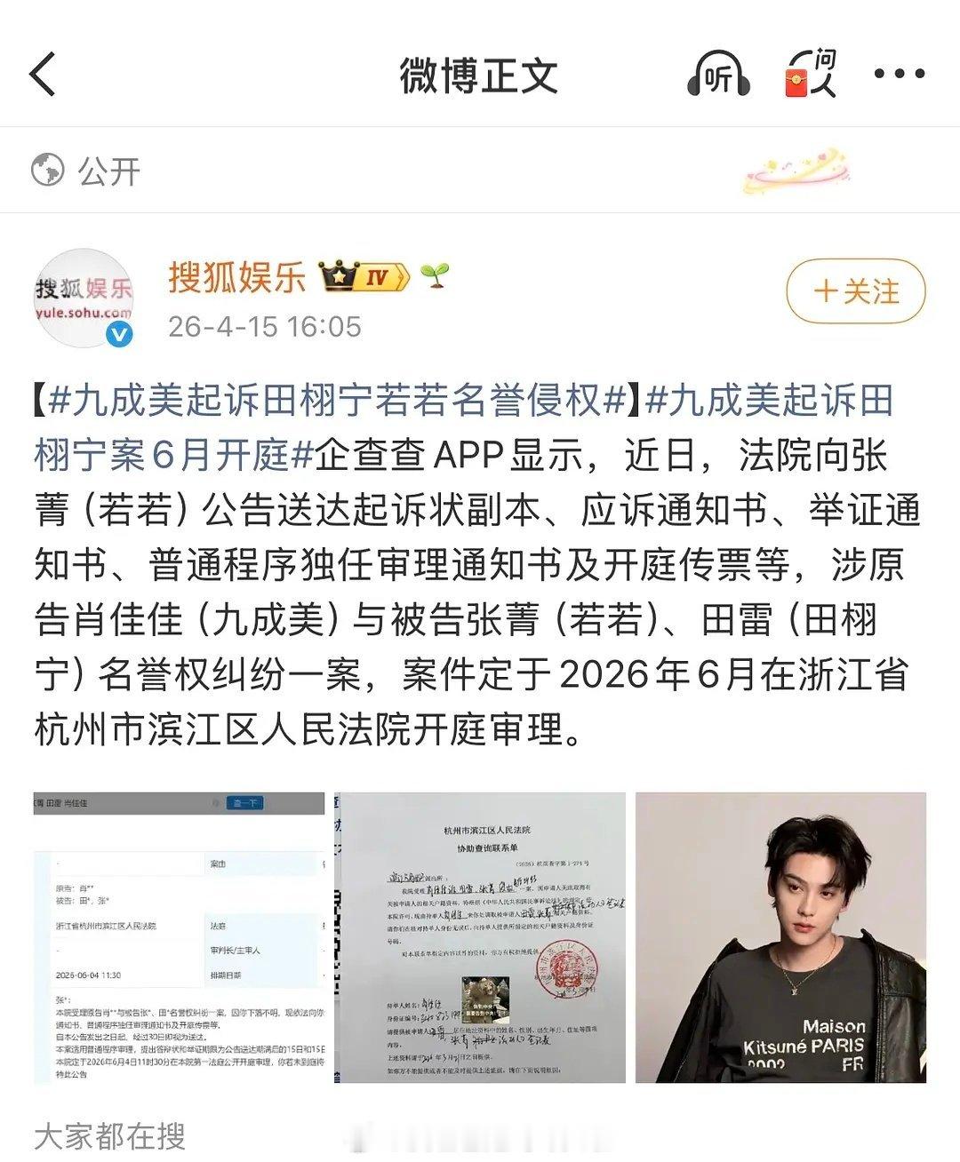 报!九成美起诉田栩宁和若若的案子6月4号开庭会线上庭审吗? 九成美起诉田栩宁若若名誉侵权九成美起诉田栩宁案6月开庭