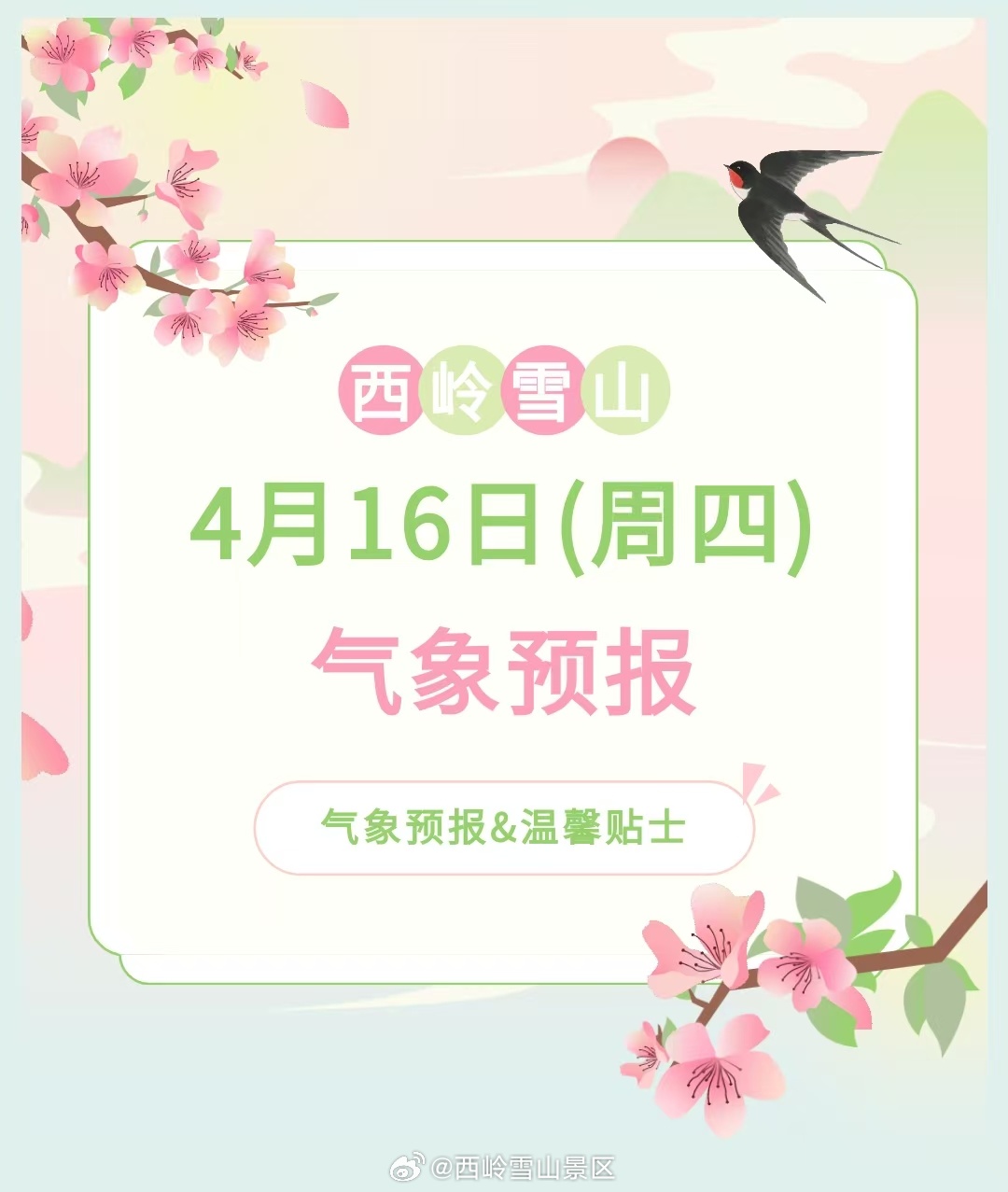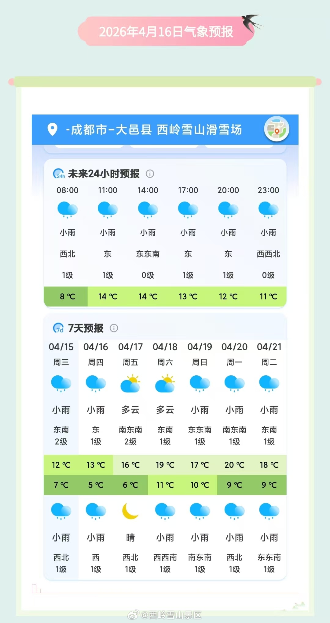 西岭雪山4月16日(周四)气象预报#西岭雪山 #