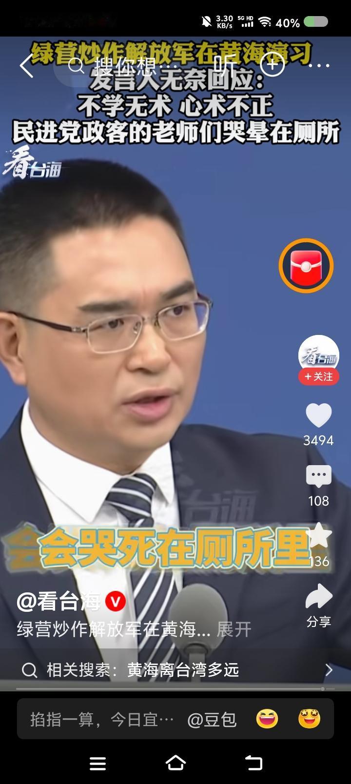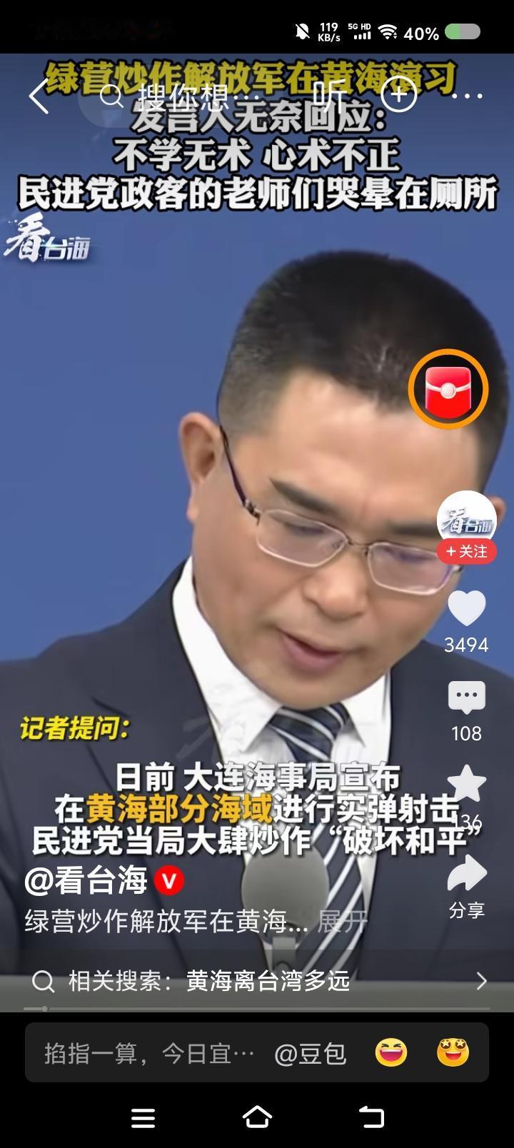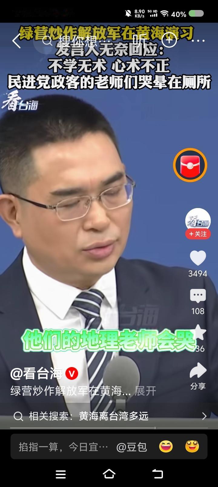 国台办发言人斥台湾当局—— 据报道,记者问国台办发言人:“大连海事局宣布,解放军将在黄海部分海域实弹射击。台湾当局炒作此事,认为此举破坏和平。如何评论?” 发言人说:“这些人基本上受过高等教育,说出这话如果不是不学无术,就是心术不正了。不光他们的地理老师会哭,历史、语文、思想品德老师都哭晕在厕所。” 点评: 民进党逢中必反,它管什么常识、品德,连人性都没有。 发言人,“台du”分子这回的逻辑可能是这样的: “大陆此次射击是不是针对日本?日本是‘台du’干爹之一,爹死儿哭,高市早苗说了‘台湾有事就是日本有事’,反过来,‘日本有事就是台湾有事’,孝子军不能眼睁睁看着干爹死……”