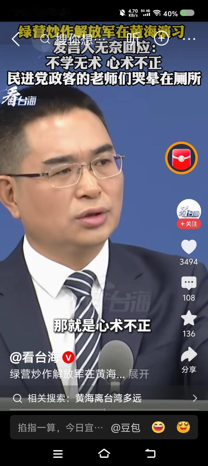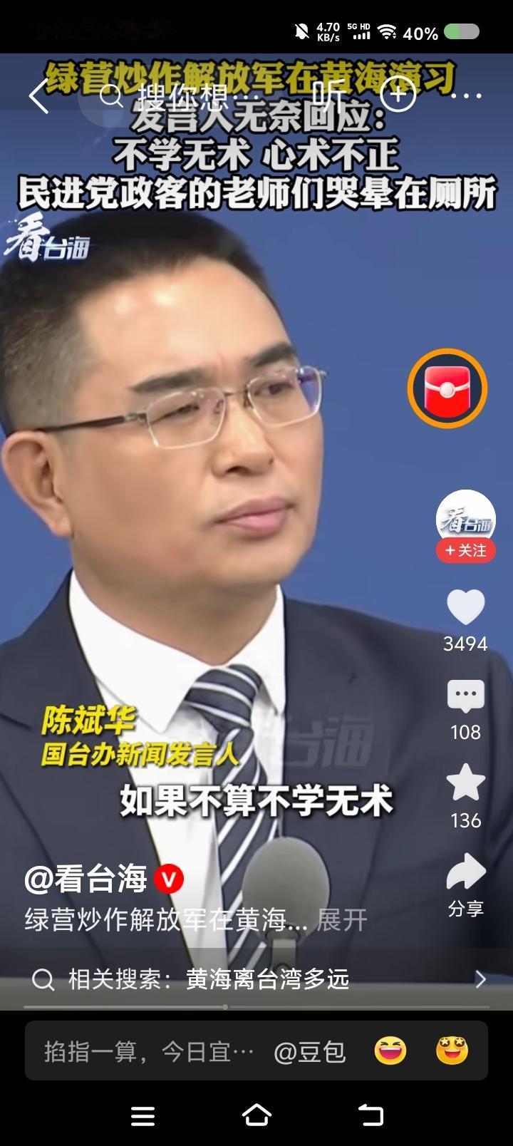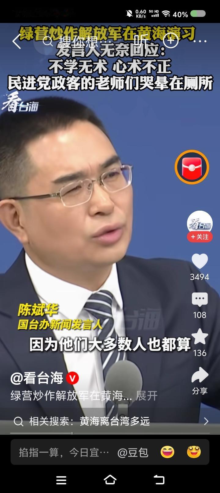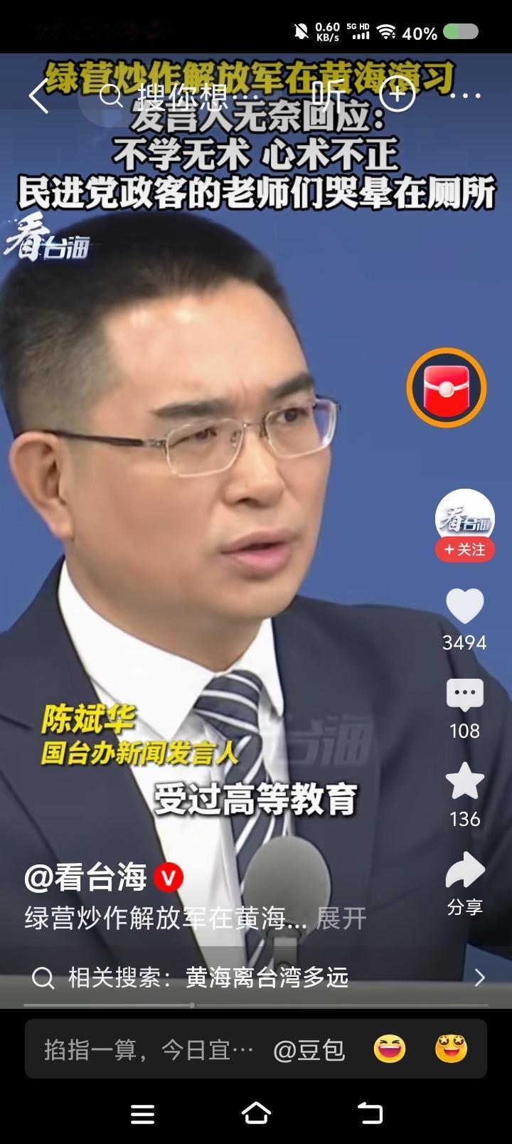 国台办发言人斥台湾当局—— 据报道,记者问国台办发言人:“大连海事局宣布,解放军将在黄海部分海域实弹射击。台湾当局炒作此事,认为此举破坏和平。如何评论?” 发言人说:“这些人基本上受过高等教育,说出这话如果不是不学无术,就是心术不正了。不光他们的地理老师会哭,历史、语文、思想品德老师都哭晕在厕所。” 点评: 民进党逢中必反,它管什么常识、品德,连人性都没有。 发言人,“台du”分子这回的逻辑可能是这样的: “大陆此次射击是不是针对日本?日本是‘台du’干爹之一,爹死儿哭,高市早苗说了‘台湾有事就是日本有事’,反过来,‘日本有事就是台湾有事’,孝子军不能眼睁睁看着干爹死……”