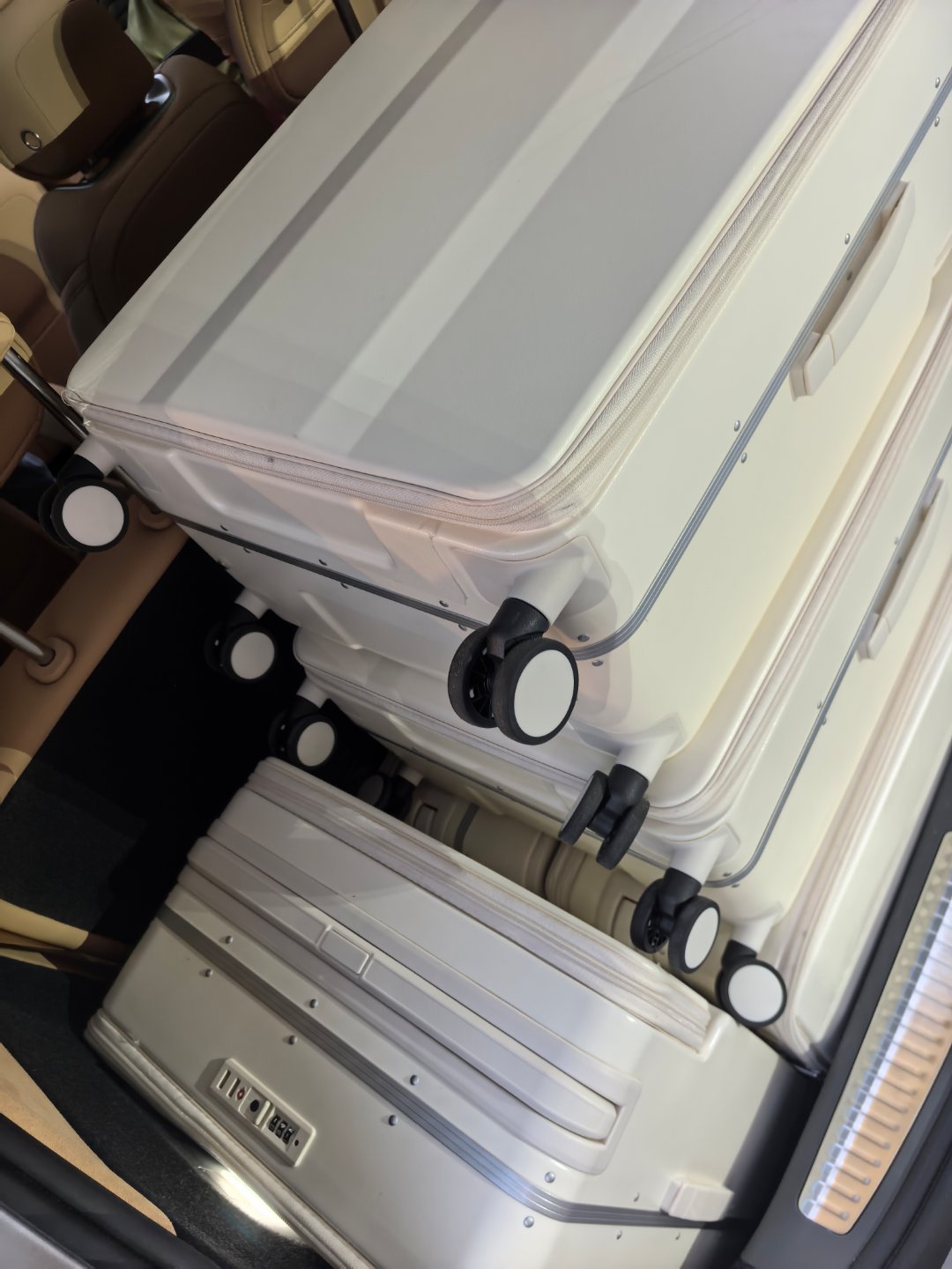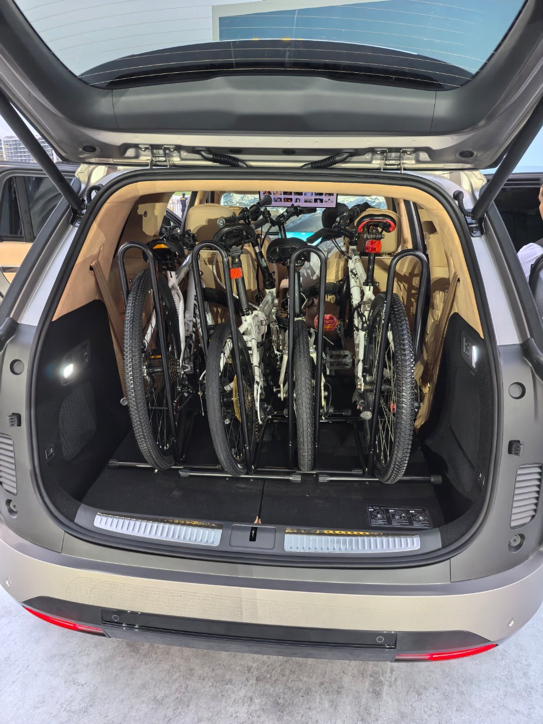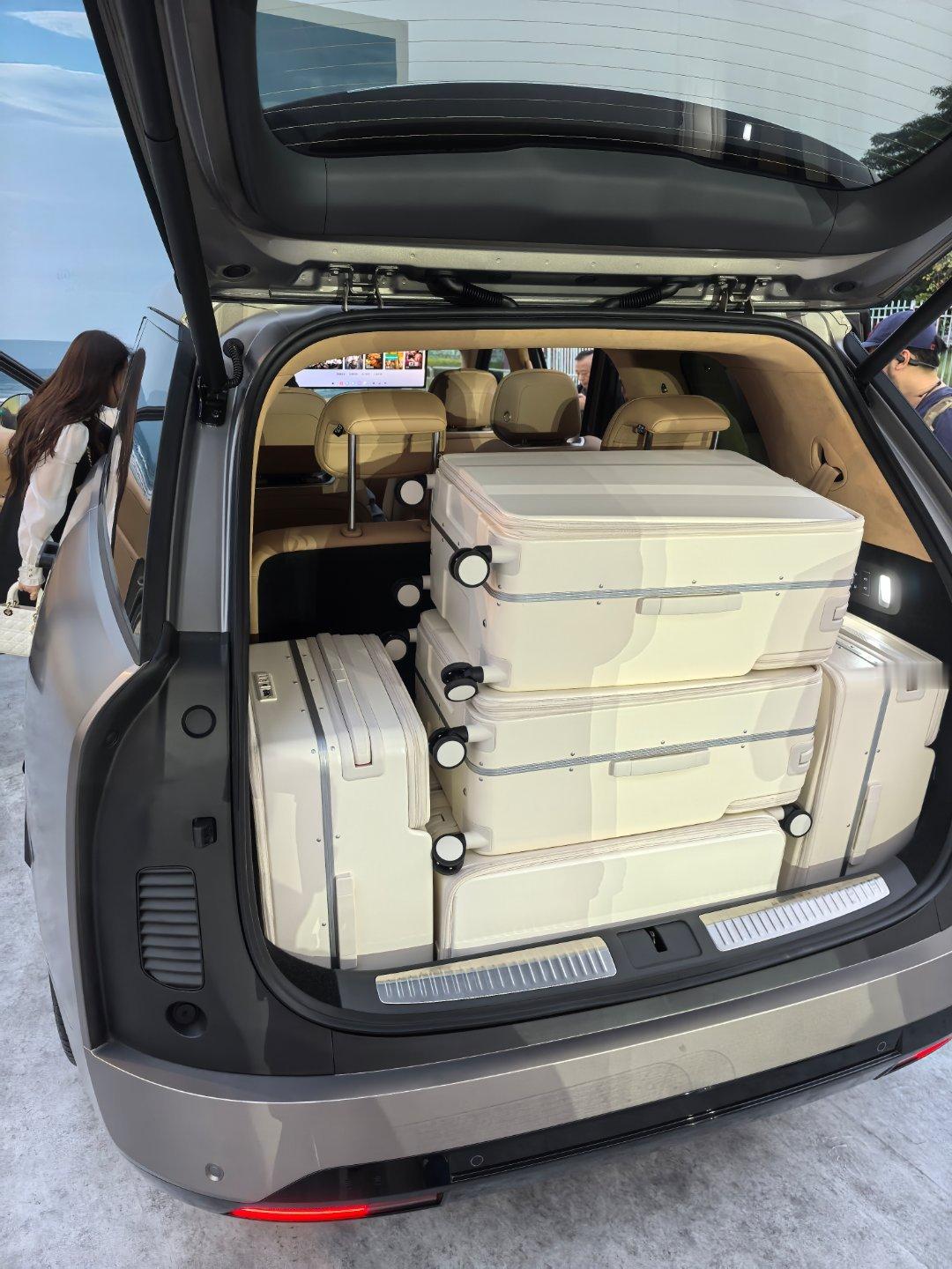 内饰变得大气了,这个车门装饰风格我是真喜欢啊,又科技又时尚,一点也不老气。内饰也是简约不简单,这小茶台和下方空间又好看又大。后备箱也是空间绝了,我看了下三排座椅全部打开且正常坐人的情况下,还能放下至少6个22?还是24寸登机箱,而且还是有空间可以放别的。放倒一个三排座椅可以放高尔夫球包,三排全放倒可以放4台自行车,真的太恐怖了。