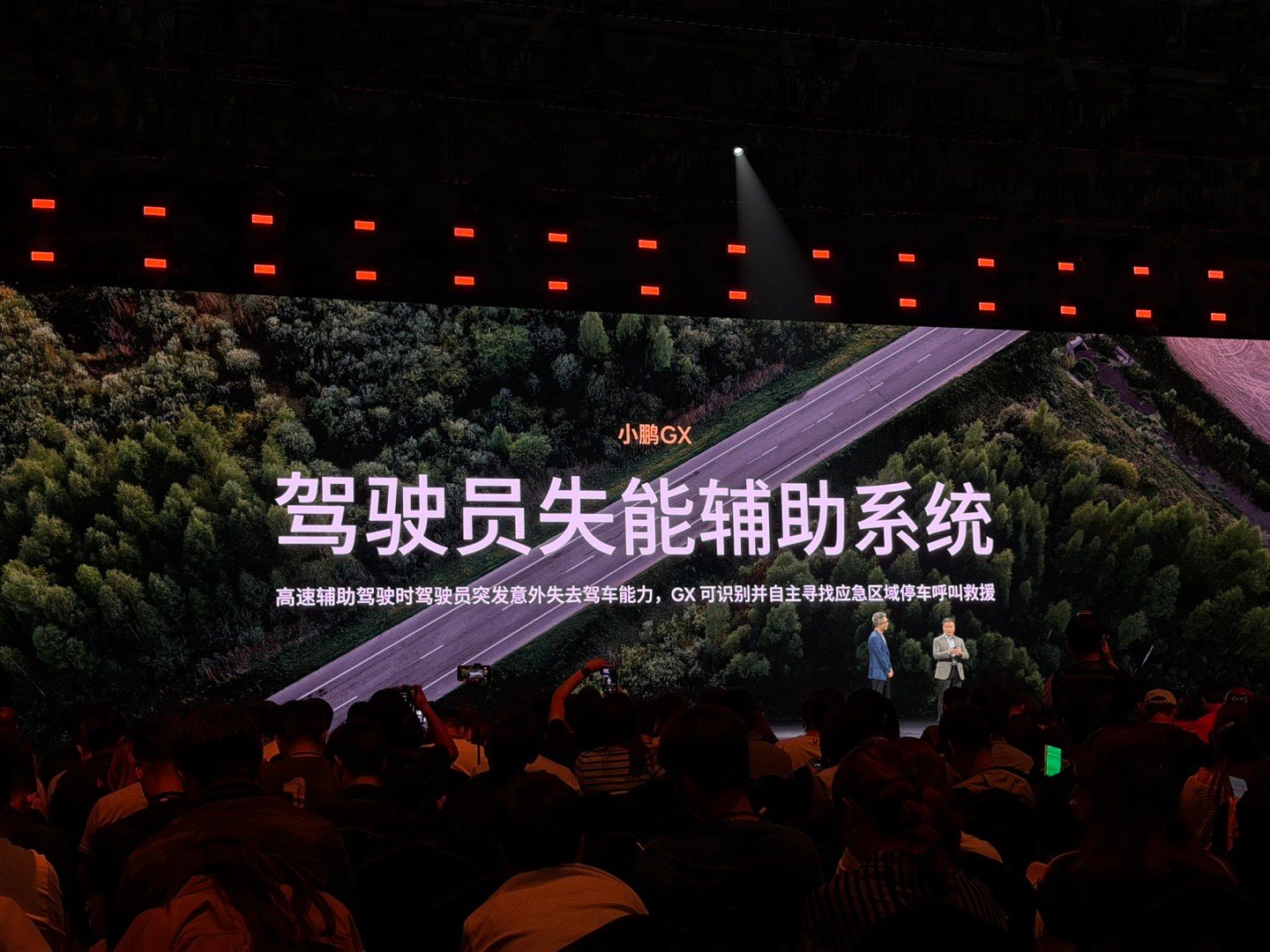 日常高速行驶时,如果遇到驾驶员失能的话,小鹏GX的驾驶员失能辅助功能真的好,车子会自动接管控制,自主变道、避让车流,慢慢开到安全区域停下等待救援,最大程度规避二次事故。