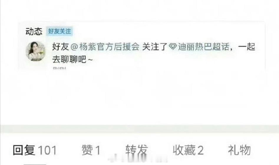 疑似杨紫后援会关注迪丽热巴超话杨紫后援会回应了“关注个🥚 你也配?”