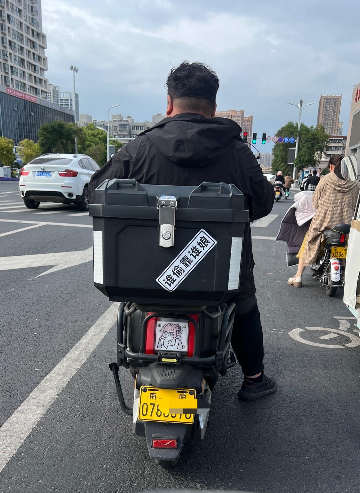 路上等红绿灯时看到这位男孩在后备箱上粘贴了一幅字,看字的内容像是这位男孩受到了什么小刺激?