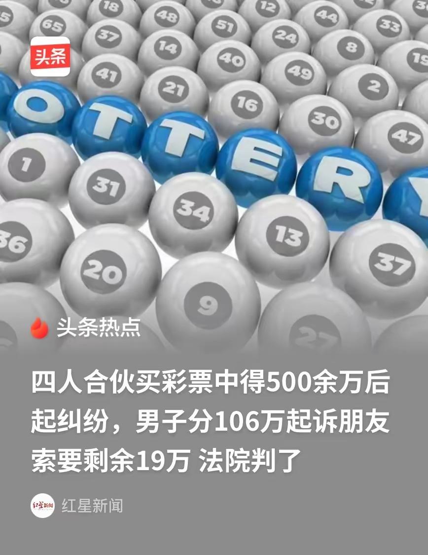 140元合伙彩票中500万,分106万还被告,法院判决撕开人性与合伙规则 河南许昌,男子选购了140元的彩票,而后发给平时经常一起合伙买彩票的3名朋友。3名朋友心照不宣都支付给男子35元。随后,彩票开奖,意外中奖,男子领了500多万元。 不过事后因男子只分给其中一朋友106万元,被对方告上法庭,索要剩余的19万元。男子认为,对方一分钱也不该分,给对方106万元,已经念及朋友的关系等等。法院这样判! 这场因彩票奖金引发的纠纷,看似是朋友间的利益反目,实则是合伙法律关系与人性博弈的集中体现,也给所有民间合伙行为敲响了警钟——口头约定、心照不宣的合作模式,在巨额利益面前不堪一击,唯有清晰的权责规则,才能守住合作的底线,避免情谊被利益彻底撕碎。 梳理整件事的细节就能发现,四人的合伙模式早已形成固定默契。这名男子长期牵头购买彩票,140元的总金额,四名参与者每人固定出资35元,3名朋友收到彩票信息后,都同步转账35元,这种重复多次的交易行为 足以证明双方默认形成了共同出资、共享收益的合伙合意,并非男子口中的“个人购彩、自愿赠与”。彩票作为有价证券,出资行为本身就对应着财产权益,每一笔35元的转账,都构成了合伙购彩的法律事实,这是法院审理此案最核心的事实依据。 奖金到手后,男子的态度发生了根本性转变。面对500多万元的巨额奖金,他推翻了长期以来的合伙规则,提出对方本不该分到任何奖金,106万元只是念及朋友情分的额外馈赠,这种说辞完全违背了双方长期的合作习惯,也无视了对方的出资事实。 106万元的分配金额,看似是一笔巨款,实则是他单方面打破均分规则后的随意定价,按照四人均等出资的比例计算,每位合伙人本应享有四分之一的奖金权益,106万元与应得份额之间存在的差额,正是对方起诉索要19万元的直接原因。 很多人会站在男子的角度,认为彩票是他选号、他购买、他兑奖,功劳更大,多分奖金天经地义,却忽略了合伙行为的本质。彩票中奖具有极强的偶然性,选号、购彩只是执行环节 真正构成合伙权益的核心,是四位参与者共同承担购彩成本、共同享有中奖收益的约定。如果没有另外三人的出资,140元的彩票无法形成,中奖的可能性也无从谈起,出资就是享有权益的前提,任何一方都无权单方面更改既定的分配规则。 法院的最终判决,没有偏向任何一方的情绪诉求,而是严格依据民事合伙的法律规定作出裁定。法院认定,四人长期固定每人出资35元、合伙购彩的行为,构成事实合伙关系,奖金应按照出资比例进行均等分配 男子擅自截留奖金、拒绝补足差额的行为,违反了双方的合伙约定,最终判决男子向原告补足19万元的奖金差额,同时承担案件的诉讼费用。这个判决既维护了原告的合法财产权益,也明确了民间合伙行为的法律边界,杜绝了“先合伙后反悔”的投机行为。 这件事最令人唏嘘的,是曾经默契十足的朋友,在巨额奖金面前彻底反目。平日里互相转账、心照不宣的信任,在利益诱惑下瞬间崩塌,男子的出尔反尔,让多年的朋友情谊荡然无存,原告起诉维权,也是被逼无奈之下的自保选择。这种结局也暴露出,人性在巨额利益面前的脆弱,没有白纸黑字的规则约束,再深厚的情谊,也难以抵御利益的冲击。 这件彩票纠纷,也戳破了民间合伙的普遍误区。多数人进行合伙购彩、合伙投资等行为时,习惯依赖口头约定、朋友情谊维系合作,从不签订书面协议,对出资比例、收益分配、权责划分没有明确界定,一旦出现盈利或亏损,很容易引发纠纷。朋友之间碍于情面不愿立字据,最终只会让矛盾变得更加复杂,不仅损失利益,还会彻底毁掉人际关系。 真正稳固的合伙关系,从来不是靠情谊捆绑,而是靠规则约束。无论是彩票合伙,还是日常的商业合作,都必须明确出资方式、收益分配、风险承担等核心条款,将口头约定转化为具备法律效力的书面协议,才能避免后续的扯皮与纠纷。情谊可以是合作的基础,但永远不能替代规则,没有规则保护的情谊,在利益面前注定不堪一击。 法院的判决不仅是对一起民事纠纷的公正裁定,更是对所有民间合伙行为的引导。它明确了事实合伙的认定标准,也划定了利益分配的法律红线,提醒着每一个人,合伙的核心是权责对等,出资就该享有收益,约定就该严格遵守,任何试图单方面违约、独占利益的行为,都不会得到法律的支持。 一场彩票,看清人性,也看清规则的重要性。当情谊遇上利益,唯有规则才能守住底线;当合伙遇上纠纷,唯有法律才能保障公平。希望所有人都能以此为戒,摒弃口头约定的侥幸心理,重视规则与法律的约束,不让朋友情谊毁于利益之争,不让合法权益受损于口头默契。 各位读者你们怎么看?欢迎在评论区讨论。
