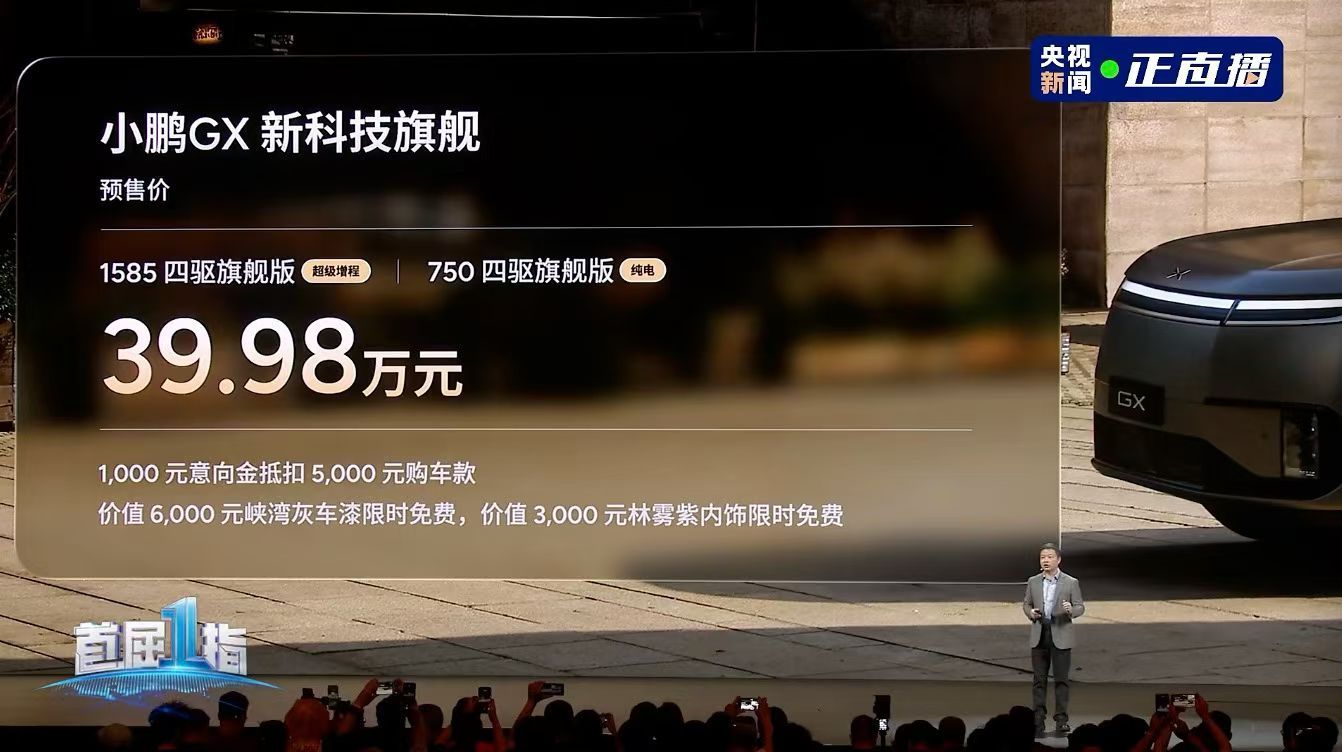 小鹏GX预售价格出来了,39.98万,我感觉这个应该是大顶配的价格,中低配估计还有惊喜。新科技旗舰小鹏GX今晚预售央视称小鹏GX为科技大成之作