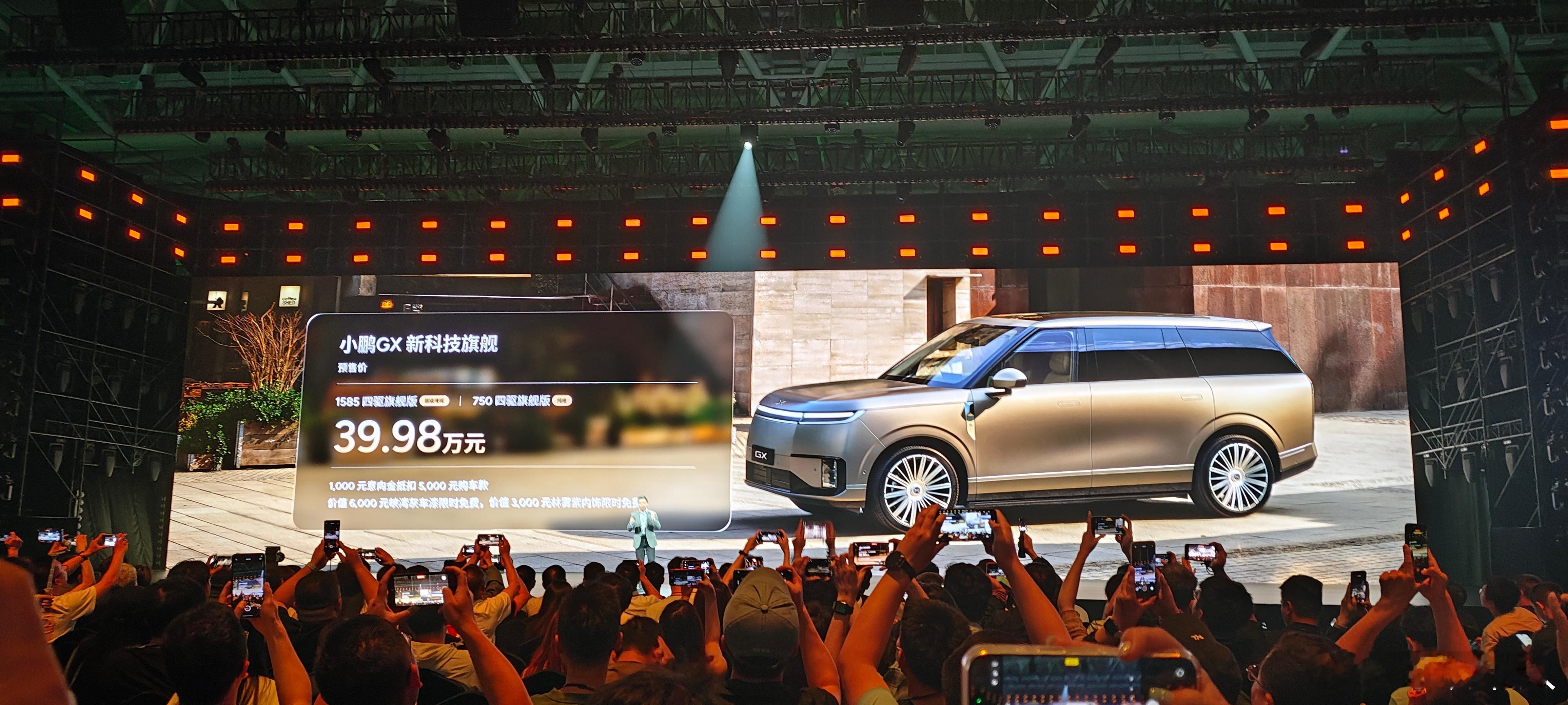 小鹏GX预售价格终于来了!纯电、增程两个四驱旗舰价格一样都是39.98万元,纯电的续航是750km,增程的是纯电430km/满油满电1585km,车长5.2米轴距超过3.1米的全尺寸SUV配置拉满,大家觉得这个价格你在预期内吗? 新科技旗舰小鹏GX今晚预售央视称小鹏GX为科技大成之作