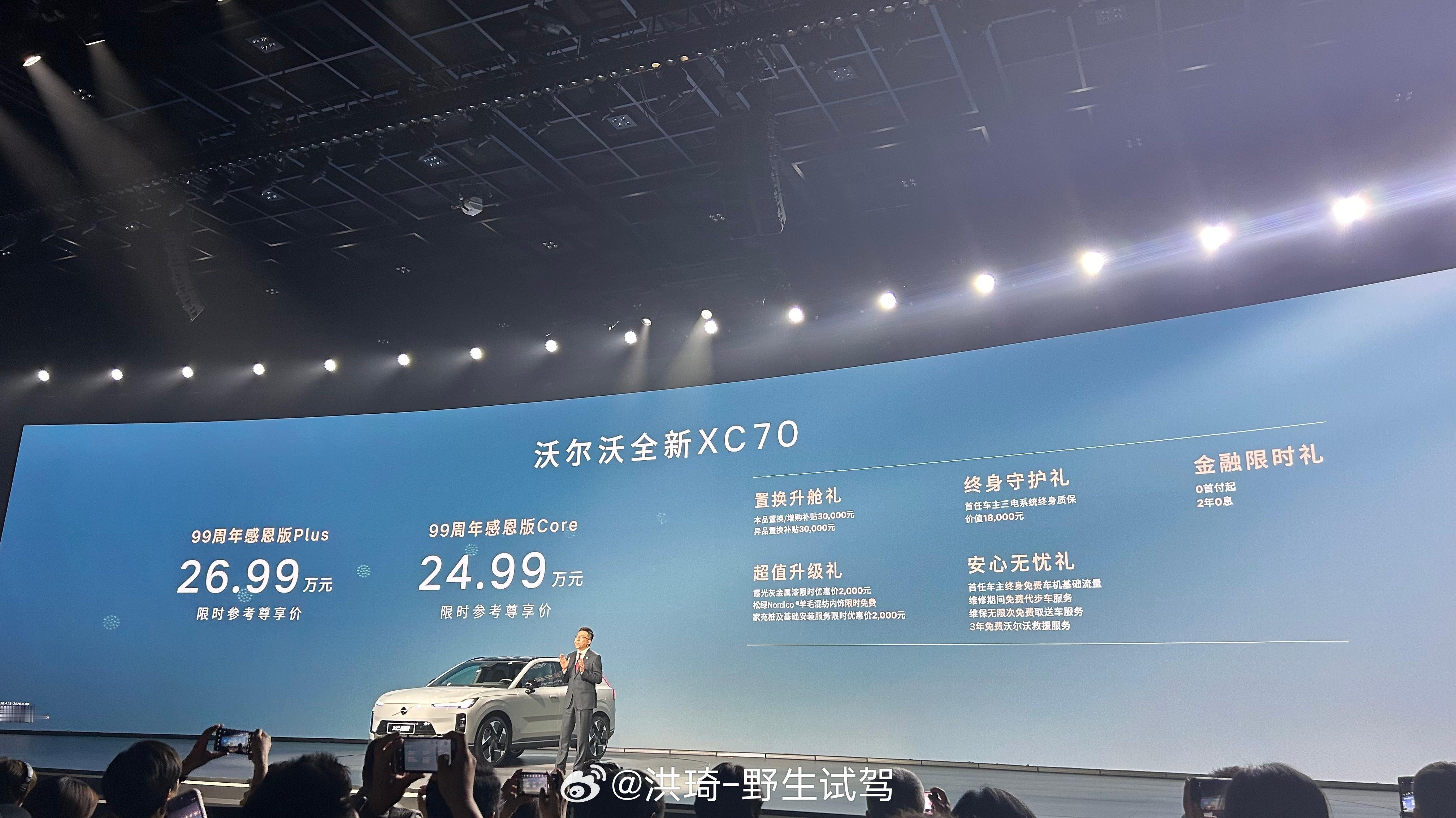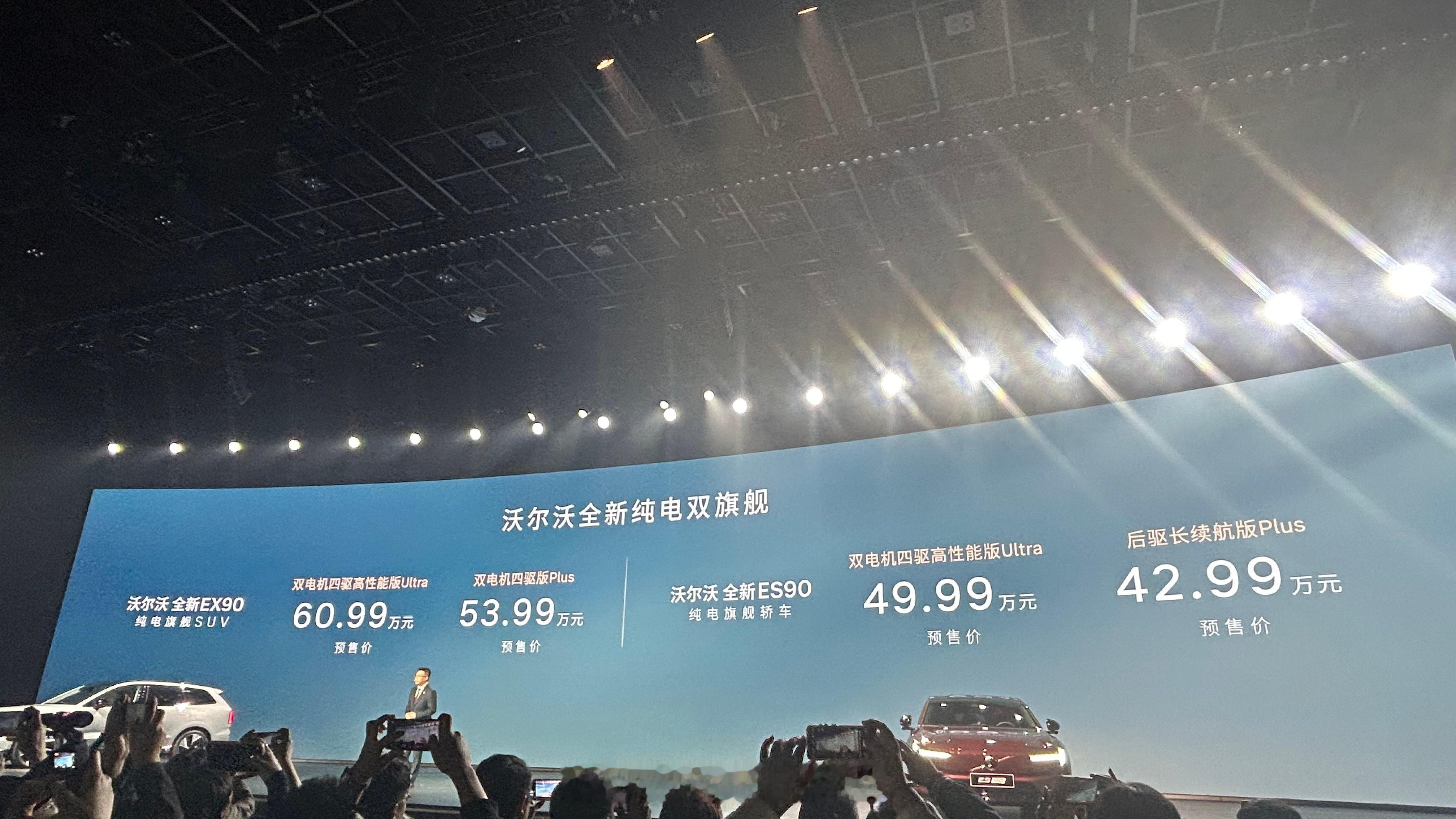 沃尔沃全新纯电双旗舰上开启预售,EX90 53.99-60.99万元;ES90 42.99-49.99万元;沃尔沃纯电双旗舰开启预售XC70新增两款99周年感恩款24.99-26.99万元。