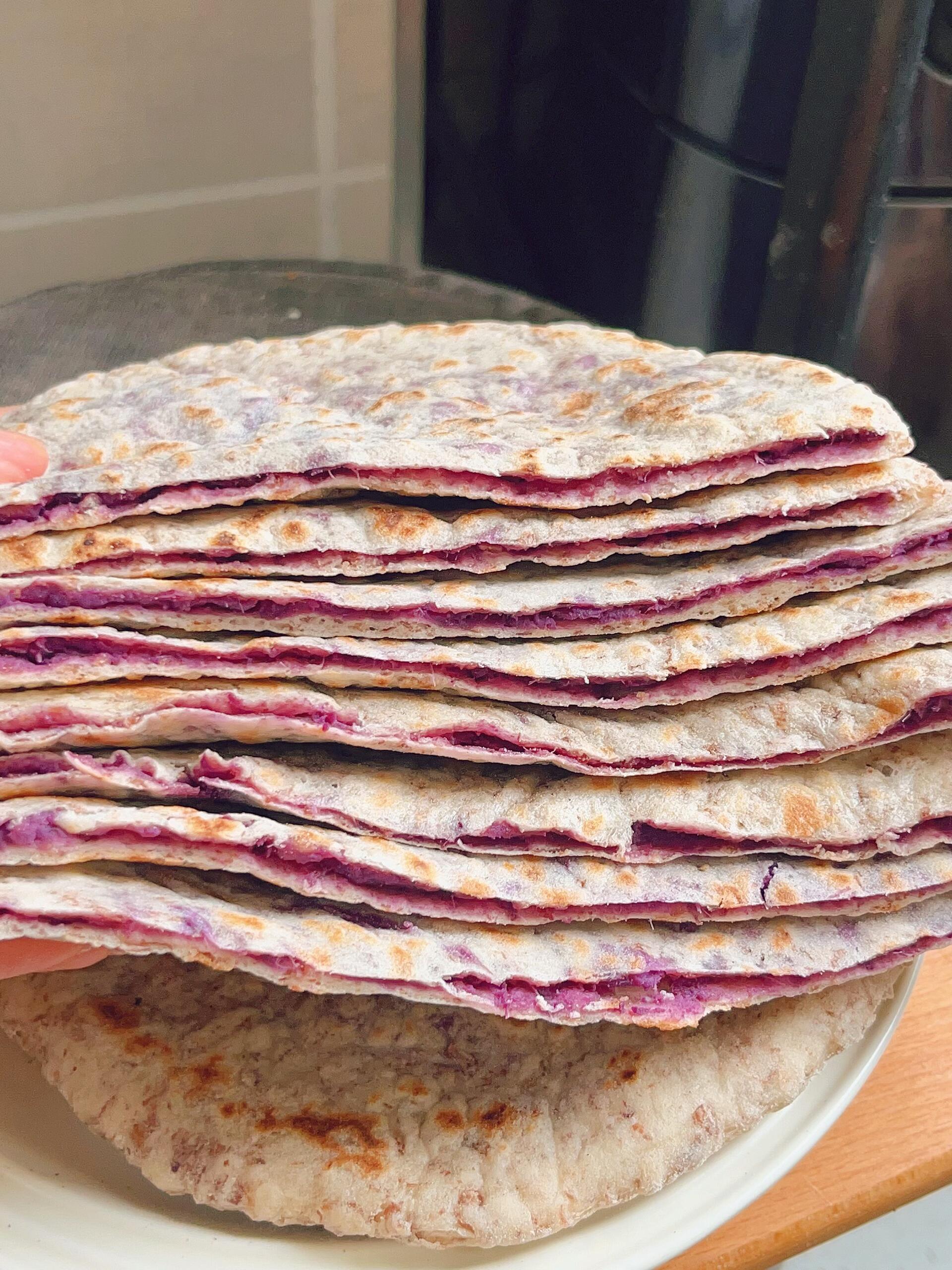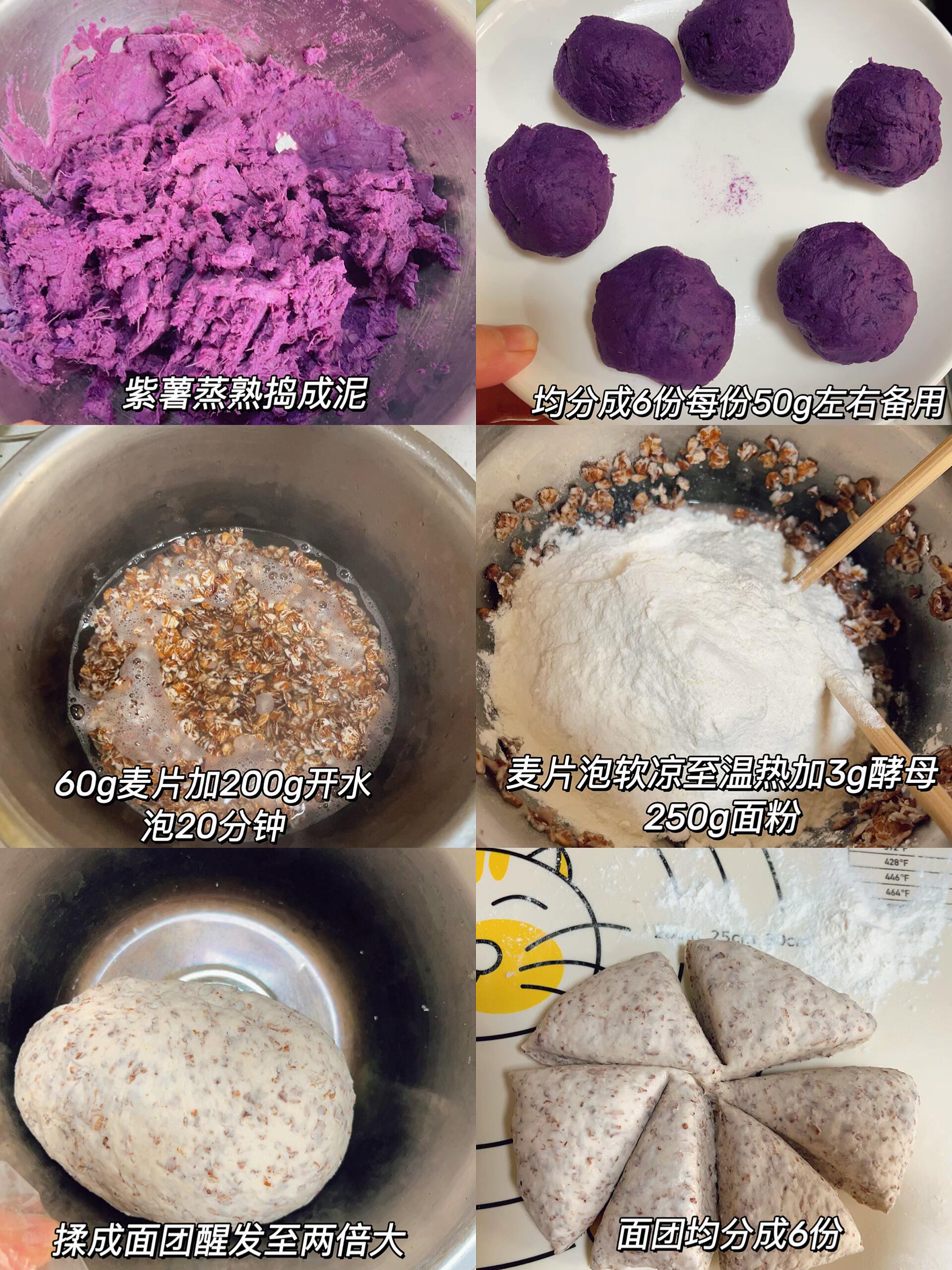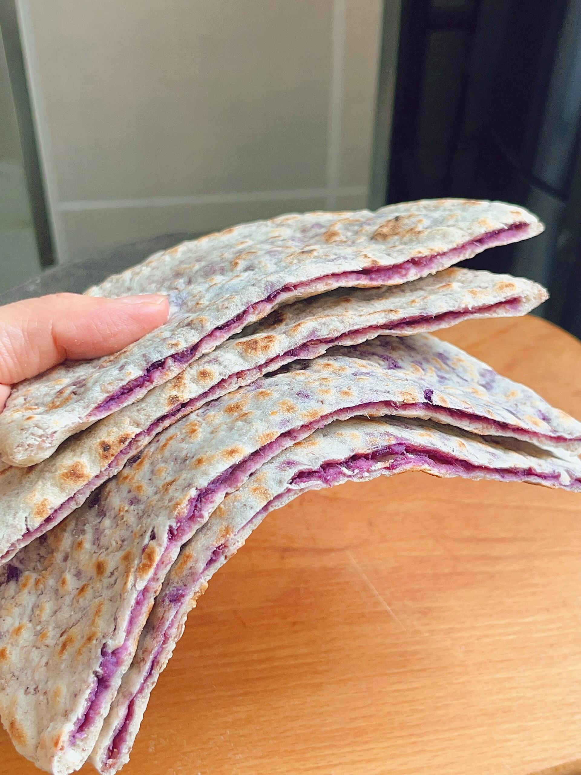 无糖无油超软乎,紫薯燕麦香到上头✨ 减脂党、控糖党快看过来😭 挖到一款零负担的健康薄饼,好吃不胖还省事! 就是这个紫薯燕麦薄饼,全程不加糖、不加油,甜度全靠紫薯本身的自然清甜,软乎乎糯叽叽,咬一口全是紫薯和燕麦的香,健康又解馋,老人小孩都能放心吃~ 不用复杂工具,平底锅就能搞定,新手也能零失败,不管是当早餐、加餐还是减脂期垫肚子,都再合适不过,软到掉渣,越吃越香! 食材准备(6个量,按需增减) 紫薯、燕麦60g、开水200g、面粉250g、酵母3g 👩🍳 简单步骤(记不住直接收藏,零难度!) 1. 紫薯洗净切块,上锅蒸熟,蒸到用筷子能轻松戳透,取出来捣成细腻的紫薯泥,晾凉后分成6份,每份大概50g,搓成小圆球备用。 2. 准备60g燕麦,倒入200g开水,搅拌均匀后浸泡20分钟左右,泡到燕麦完全变软,晾至温热后,加入3g酵母和250g面粉,下手揉成光滑的面团,盖上盖子醒发至两倍大。 3. 发酵好的面团取出来,揉一揉排气,均分成6个小面剂,每个面剂揉成小圆球,用擀面杖擀成薄薄的圆饼,放入一份紫薯泥,像包包子一样收口,再轻轻擀成薄薄的圆饼。 4. 平底锅提前预热,不用刷油,直接放入做好的薄饼,开中小火慢慢烙,烙到饼子鼓起来,两面都变得微微金黄,就可以出锅啦。 谁试谁夸!烙好的薄饼软乎乎的,不硬不柴,每一口都能吃到紫薯的绵密和燕麦的醇香,没有多余的添加剂,健康又饱腹。 控糖、减脂的姐妹放心冲,不用怕长肉;给孩子当早餐,营养又省事,不用早起,简单几步就能搞定,赶紧安排起来,不好吃你找我!