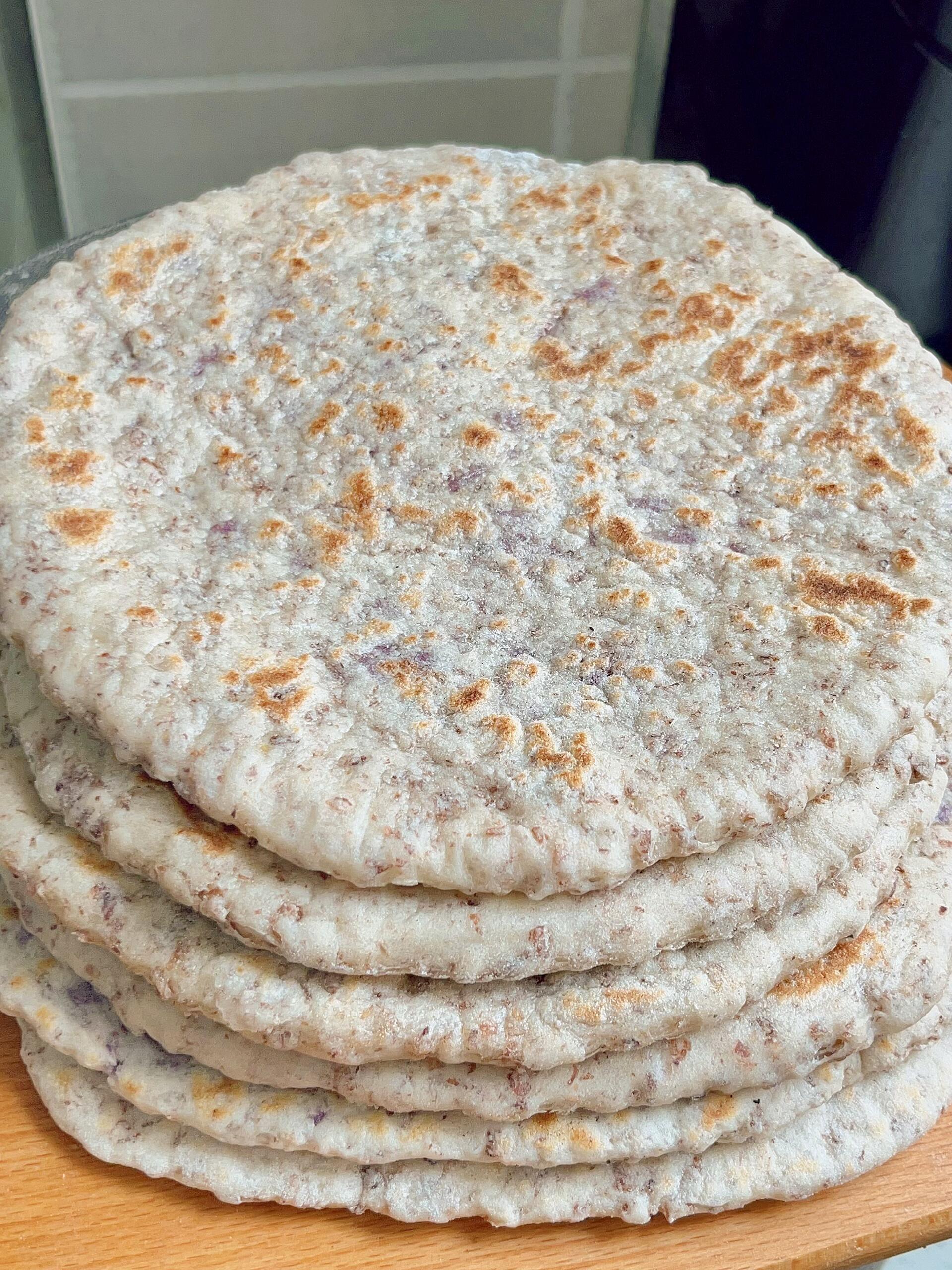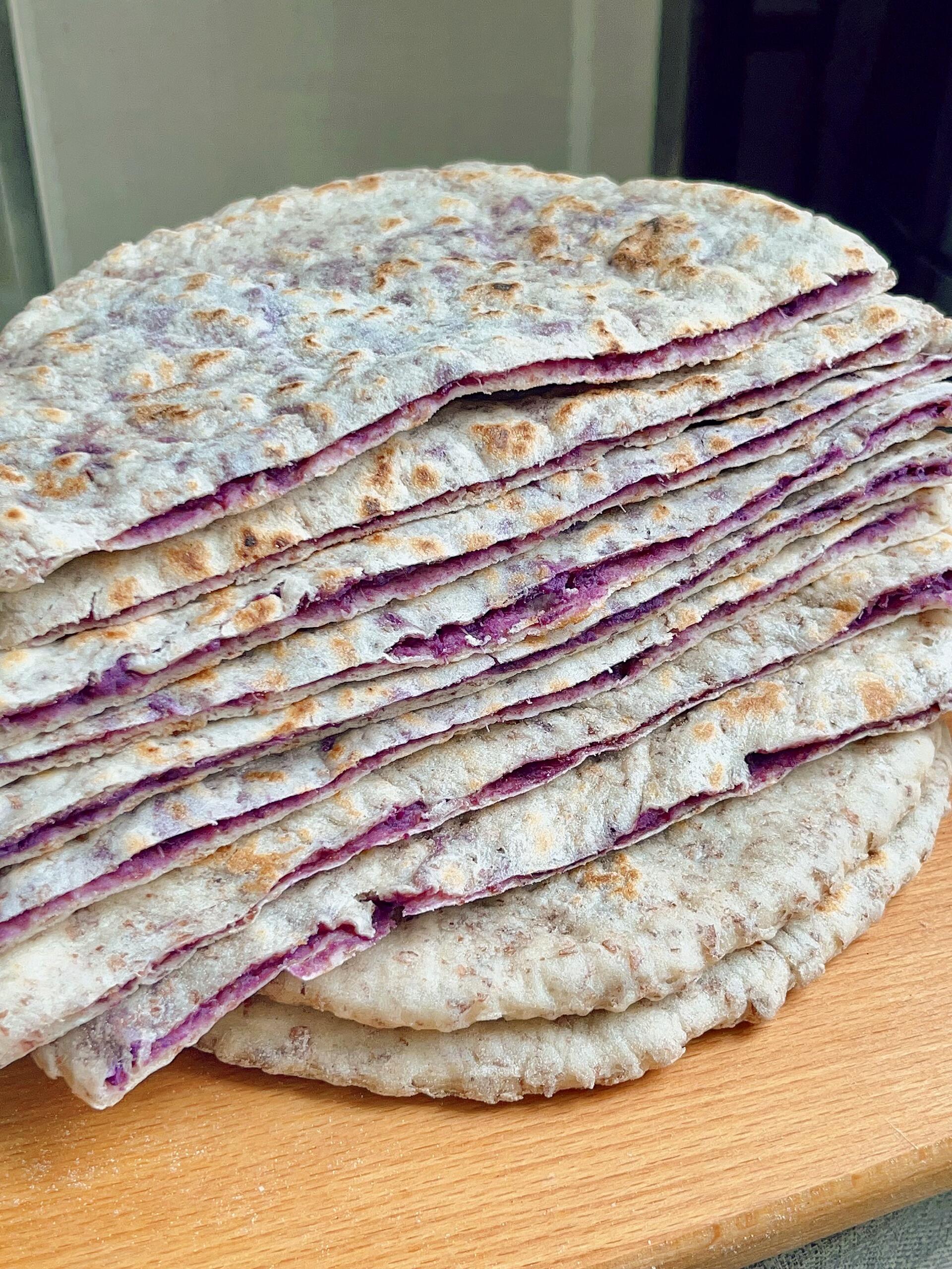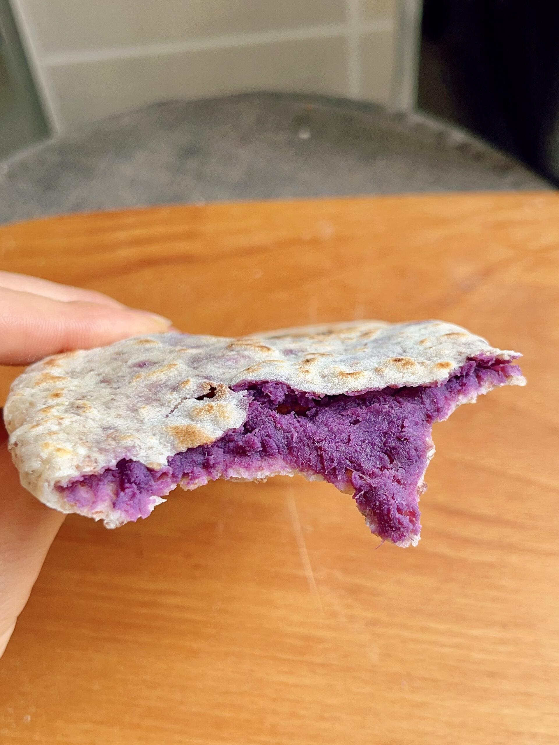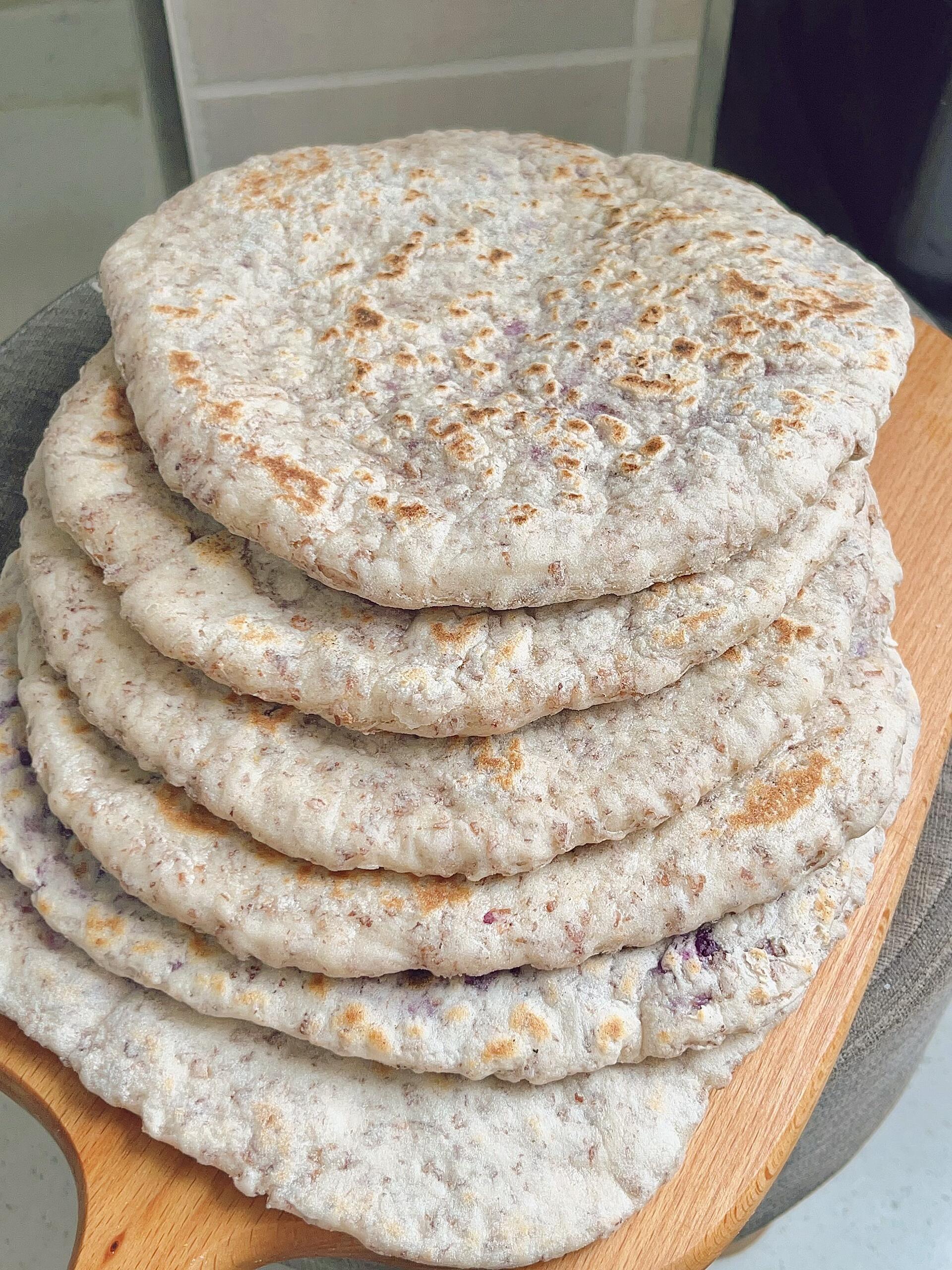 无糖无油超软乎,紫薯燕麦香到上头✨ 减脂党、控糖党快看过来😭 挖到一款零负担的健康薄饼,好吃不胖还省事! 就是这个紫薯燕麦薄饼,全程不加糖、不加油,甜度全靠紫薯本身的自然清甜,软乎乎糯叽叽,咬一口全是紫薯和燕麦的香,健康又解馋,老人小孩都能放心吃~ 不用复杂工具,平底锅就能搞定,新手也能零失败,不管是当早餐、加餐还是减脂期垫肚子,都再合适不过,软到掉渣,越吃越香! 食材准备(6个量,按需增减) 紫薯、燕麦60g、开水200g、面粉250g、酵母3g 👩🍳 简单步骤(记不住直接收藏,零难度!) 1. 紫薯洗净切块,上锅蒸熟,蒸到用筷子能轻松戳透,取出来捣成细腻的紫薯泥,晾凉后分成6份,每份大概50g,搓成小圆球备用。 2. 准备60g燕麦,倒入200g开水,搅拌均匀后浸泡20分钟左右,泡到燕麦完全变软,晾至温热后,加入3g酵母和250g面粉,下手揉成光滑的面团,盖上盖子醒发至两倍大。 3. 发酵好的面团取出来,揉一揉排气,均分成6个小面剂,每个面剂揉成小圆球,用擀面杖擀成薄薄的圆饼,放入一份紫薯泥,像包包子一样收口,再轻轻擀成薄薄的圆饼。 4. 平底锅提前预热,不用刷油,直接放入做好的薄饼,开中小火慢慢烙,烙到饼子鼓起来,两面都变得微微金黄,就可以出锅啦。 谁试谁夸!烙好的薄饼软乎乎的,不硬不柴,每一口都能吃到紫薯的绵密和燕麦的醇香,没有多余的添加剂,健康又饱腹。 控糖、减脂的姐妹放心冲,不用怕长肉;给孩子当早餐,营养又省事,不用早起,简单几步就能搞定,赶紧安排起来,不好吃你找我!