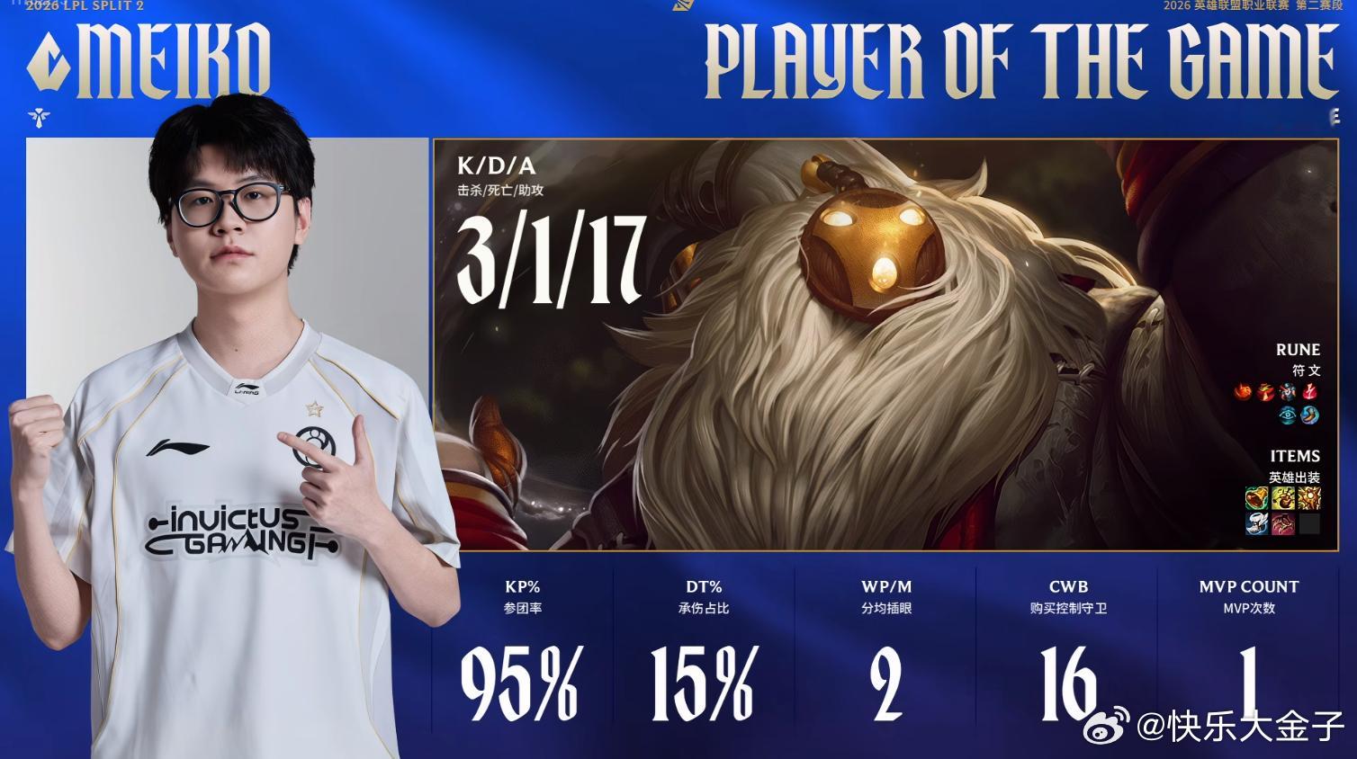 meiko总助攻11000断档第一Meiko回归首个MVP2026lpl第二赛段iG电子竞技俱乐部