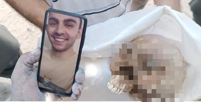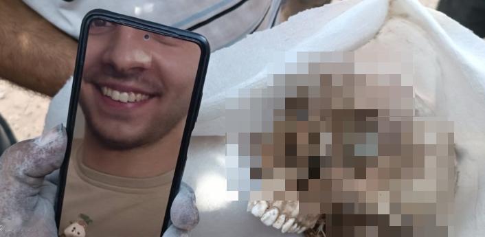 一张摄于2024年5月的照片,照片中一只戴着手套的手拿着智能手机自拍,照片里是一位面带微笑的年轻男子,旁边是一块白布上放着的残缺不全的人类头骨。声称,这具尸体是在加沙遭受严重肢解后,仅凭牙齿匹配才得以辨认身份。 作者奥马尔·哈马德是一位诗人,他自称是加沙事件的见证者,并在当地创办了一家图书馆。他表示,苦难的规模难以想象,并宣称“我们永远不会忘记,也永远不会原谅”。