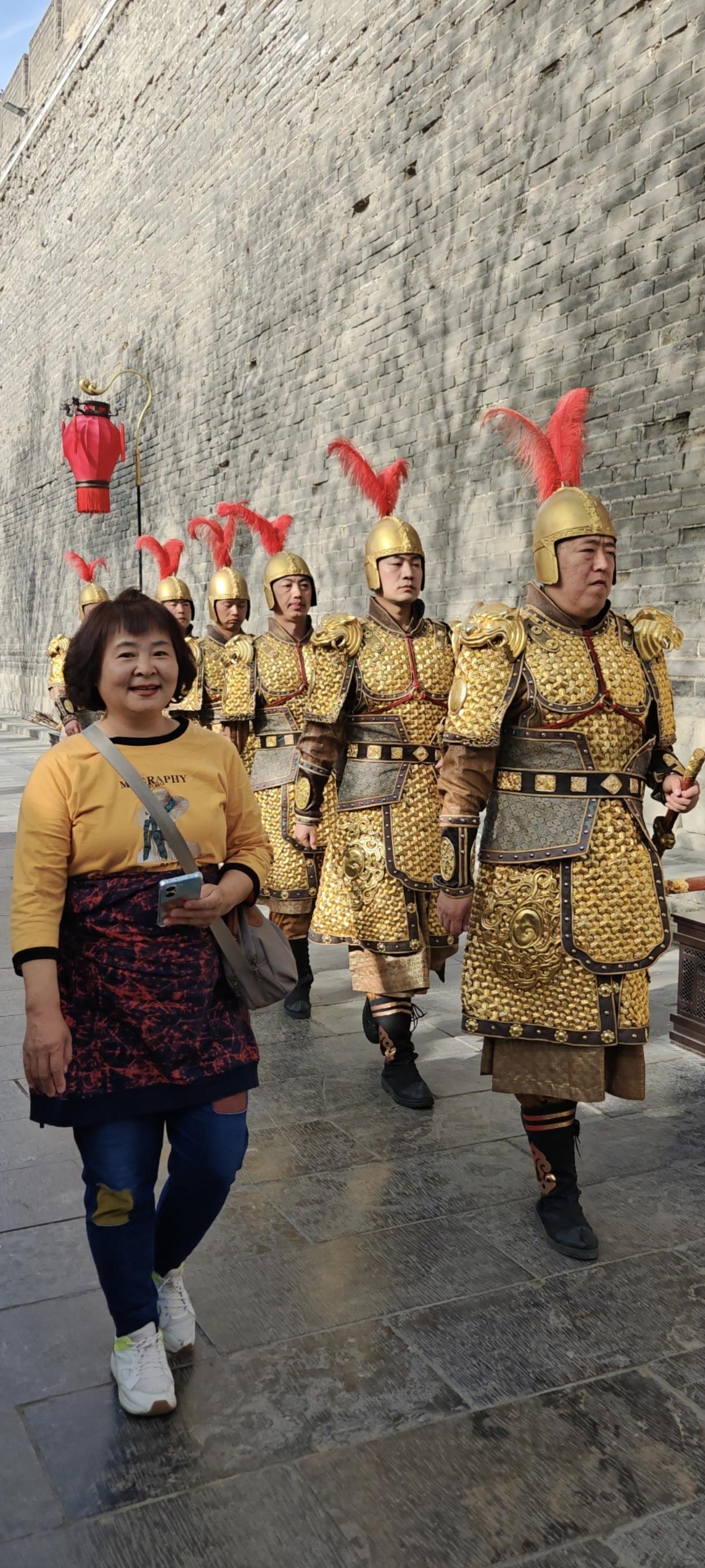 笑死我了!在西安的古城墙上,我当上了禁军统领。真不知道朋友是咋抓拍到的。看看我牛不,正给他们喊着一二一呢!
