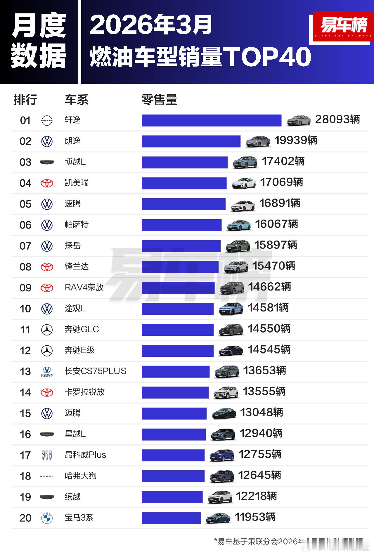 2026年3月燃油车型销量TOP40