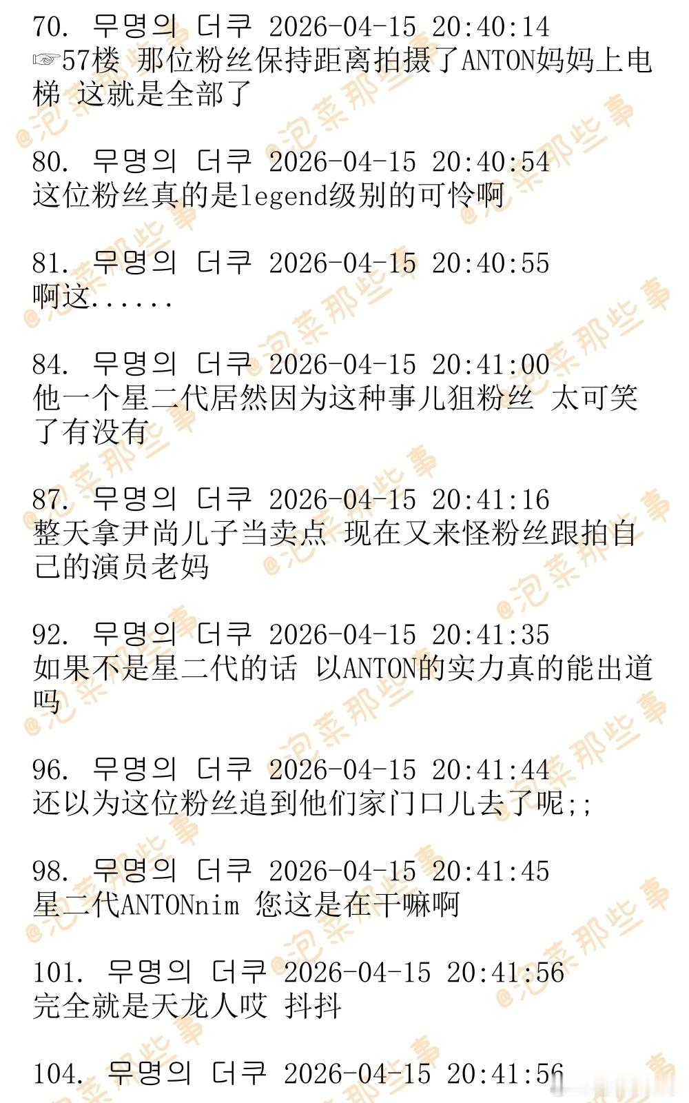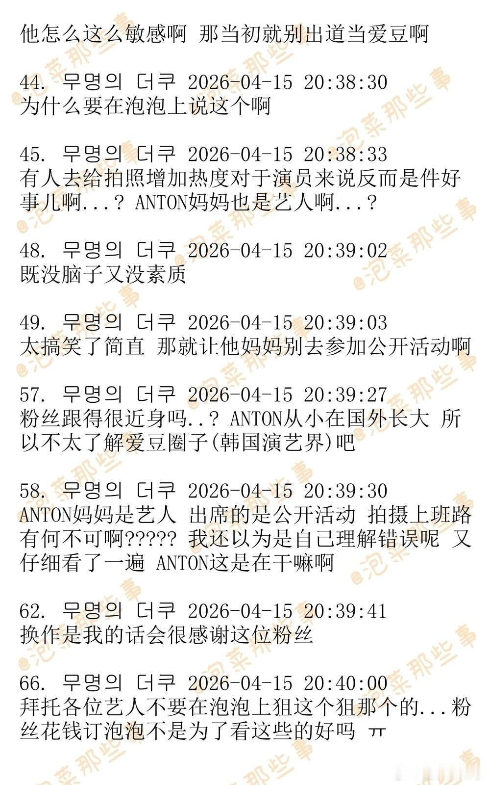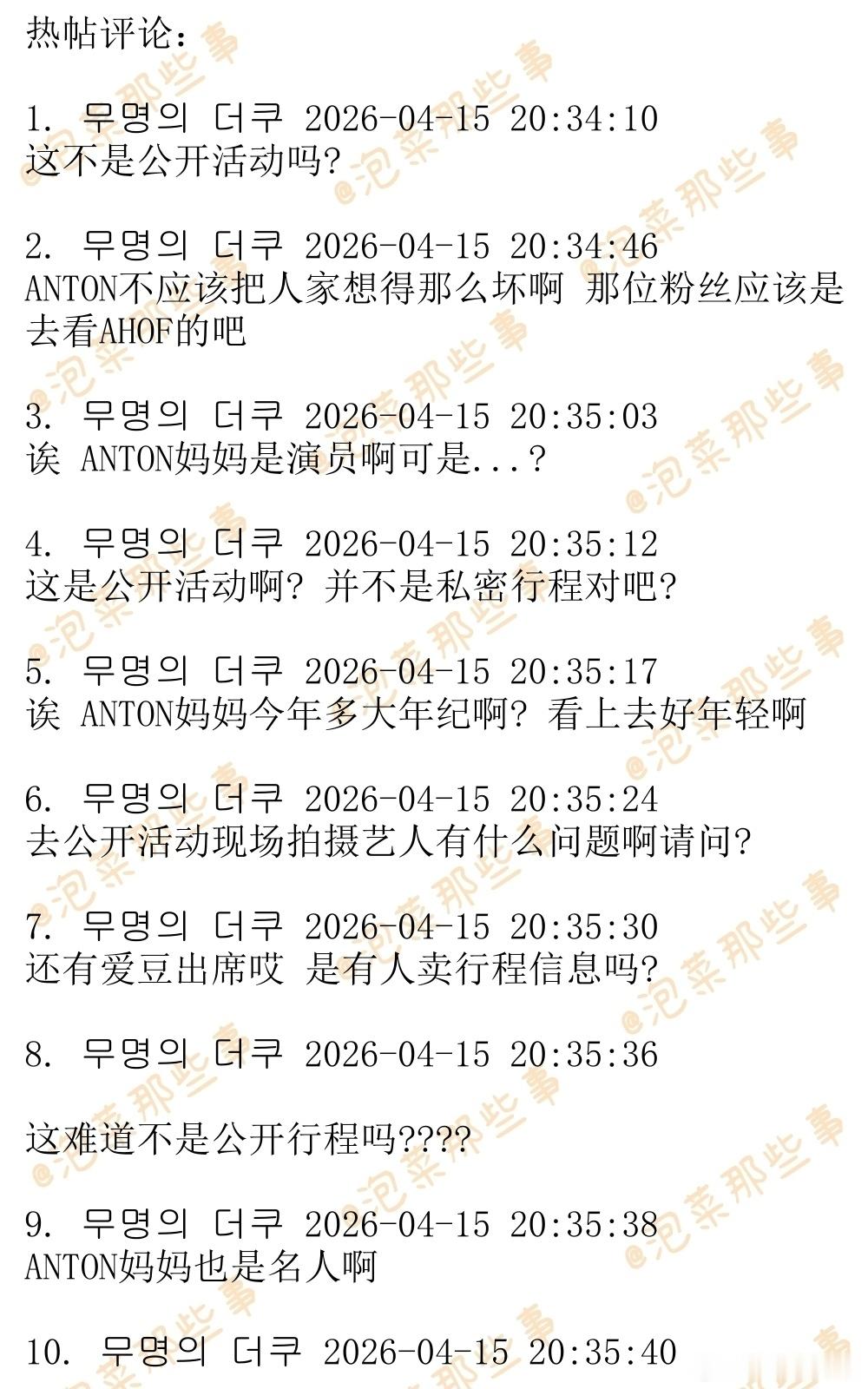 🔥🔥韩网1200楼热帖评论翻译🔥🔥RIIZE李灿荣(ANTON)泡泡狙击粉丝引发争议韩网原帖帖主称:某颁奖礼几个星期前官宣ANTON的妈妈演员沈惠珍将会出席,今天有ANTON粉丝跑去颁奖礼现场拍下了ANTON妈妈上班路。于是ANTON就发了这么一条泡泡,那个粉丝被网暴之后发了道歉文,还把自己的账号设为私密。cr.theqoo