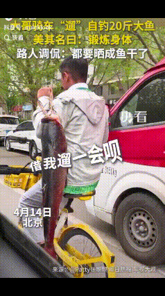 北京一网友两口子开车出去吃饭,看见一大哥骑共享单车背上还背着一条大鱼,不料,吃完饭回家时又遇见了,开始还以为是大哥迷路了,追上去一问,大哥的回答让他们意外! 4月14日,北京街上网友两口子出去吃饭之前看见一男子背着一条大鱼骑着共享单车,一小时后,两口子吃完饭回家时又遇见了这位大哥,秒懂,这位大哥是在炫耀自己钓上大鱼了。 于是,两口子追上男子问:“大哥,你这骑多久了?” 男子答非所问:“我这鱼二十二斤二两,二十斤的鱼我一个多小时才弄上来的,就为了锻炼身体。” “你这没少锻炼,你这鱼都快要晒成鱼干了!”网友调侃道。 有意思的是,网友两口子一开始说,要借他的鱼遛一会,男子表示不行。 然后就开始讲他是怎么把这条鱼弄上来的,还高兴的让网友拍下来发到网上。 不过,男子这回好了,不仅北京街上的人知道他钓到大鱼了,更多的网友也知道了。 这位大哥还是快回去把这条鱼下锅了,再晒就剩十几斤了! 或许,这就是钓鱼佬最开心的时刻了吧!