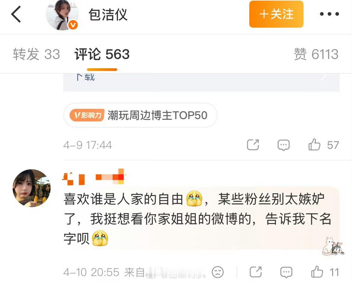 妈呀包洁仪评论区的露思粉说她骂可露丽