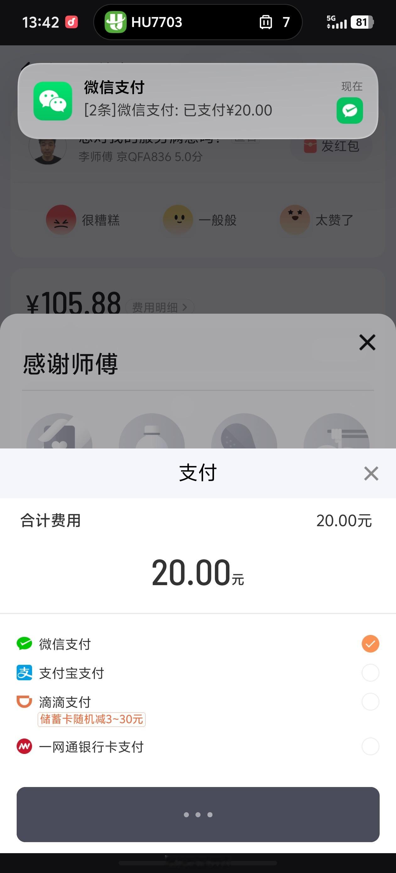 在飞机上猛睡了3个小时,落地深圳,准备打车,弹出来个窗口,原来早上那个行程我还没支付。