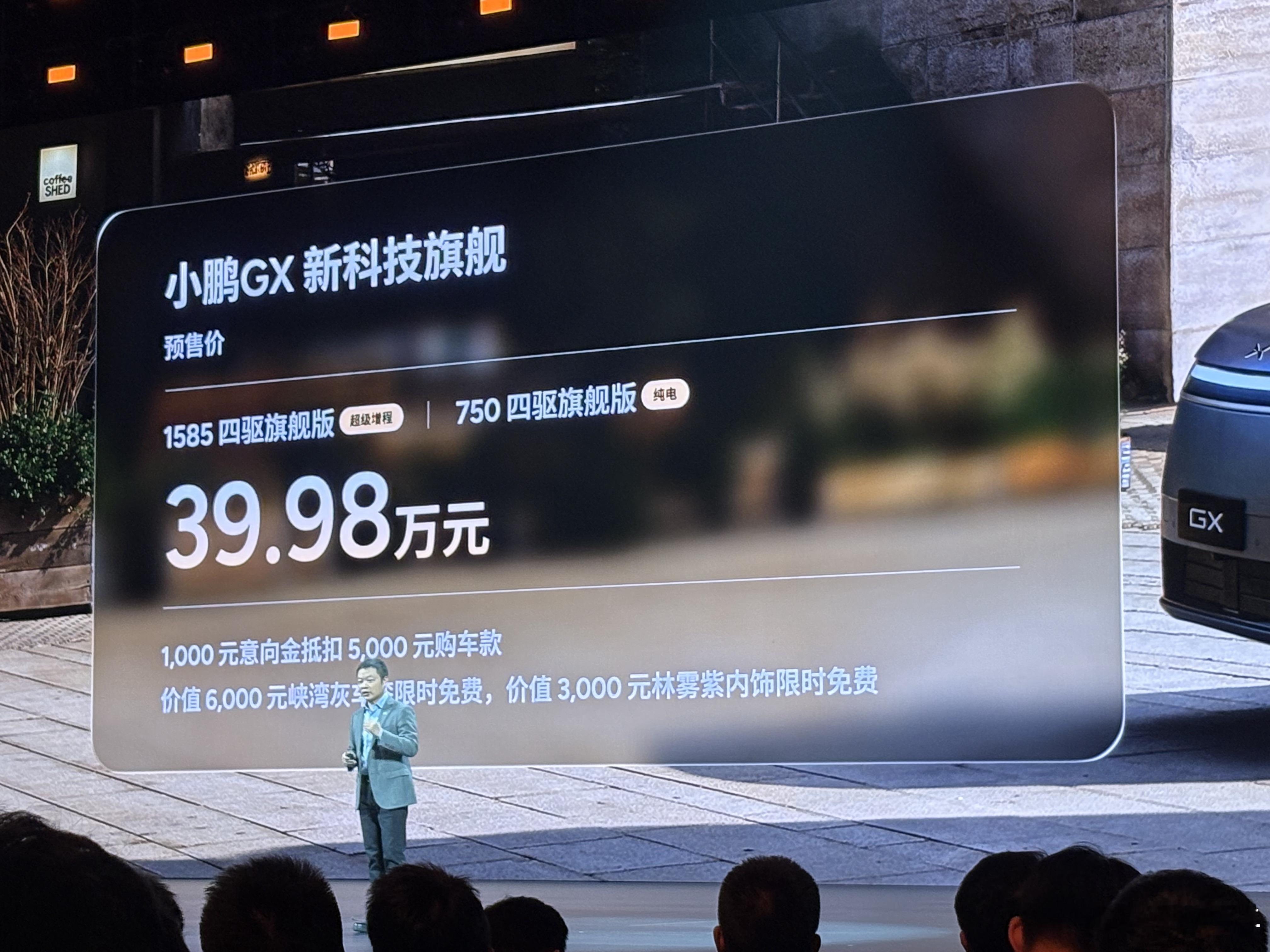 小鹏GX预售价39.98万,意向金1000抵5000。比我预想中低,我以为至少都得4开头。