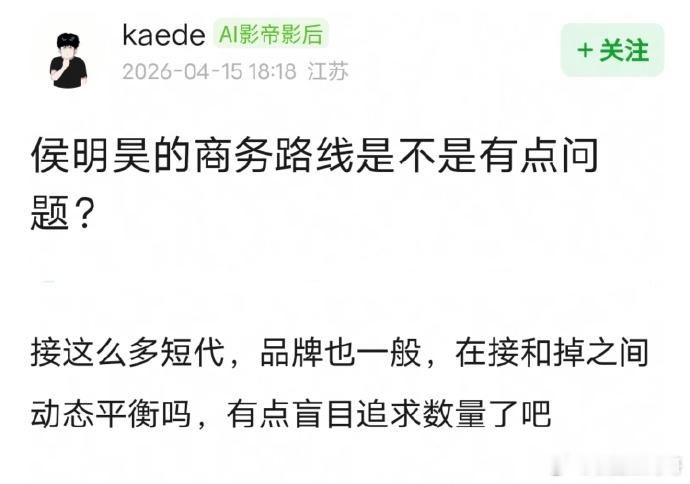 侯明昊的商务路线是不是有点问题?只追求数量了