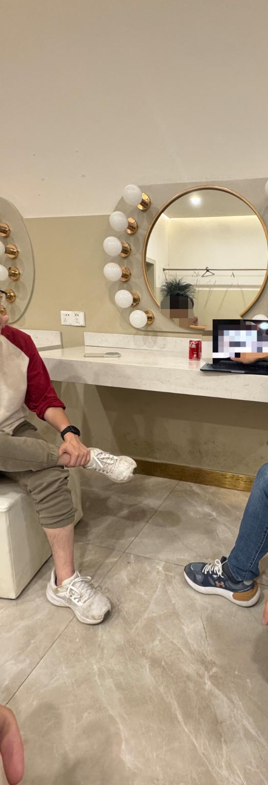 接着也加入了进来,我们几个搞技术的聊得兴致盎然,声音越来越大,都影响到的拍摄了。于是我们就去了旁边的小黑屋里,继续聊了起来。我顺手拍下了图2,就是当时的情景,考虑到太帅所以从不露脸,所以我就把图截了一下。