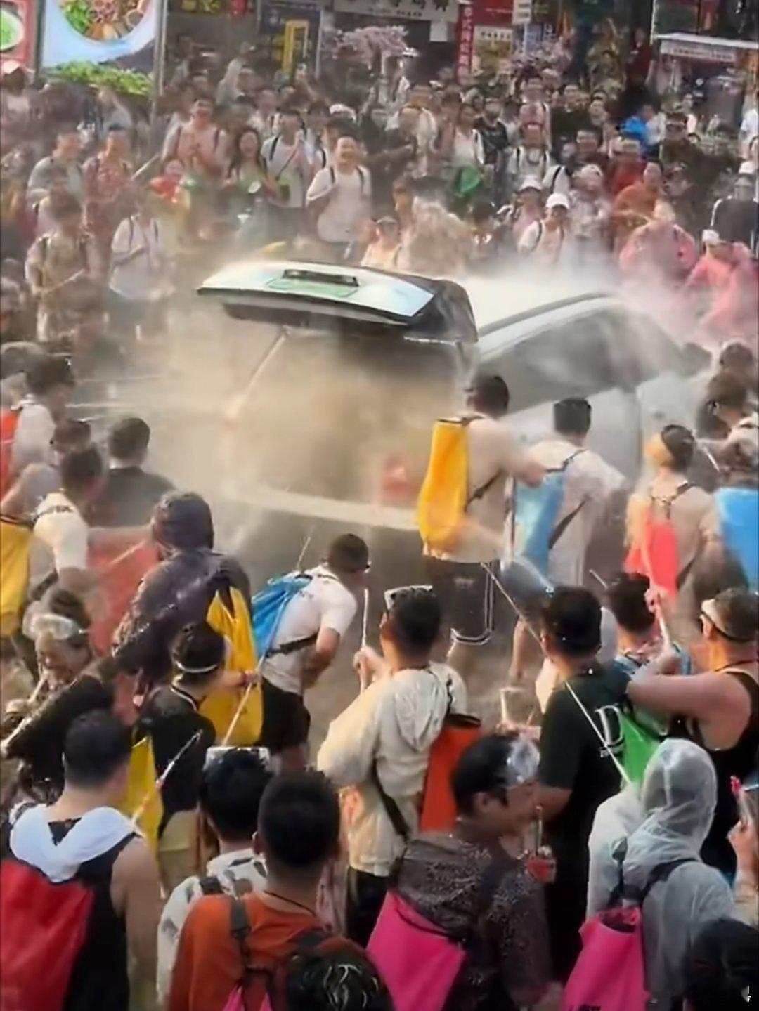 小车路过泼水节被打开车门后备箱 一群刁民借着泼水节的幌子干缺德事。好好的泼水节文化被这些人抹黑。之前我去云南的时候,特意问了当地人,人家当地人说这些捣乱不按规矩的很多都是外地来的。