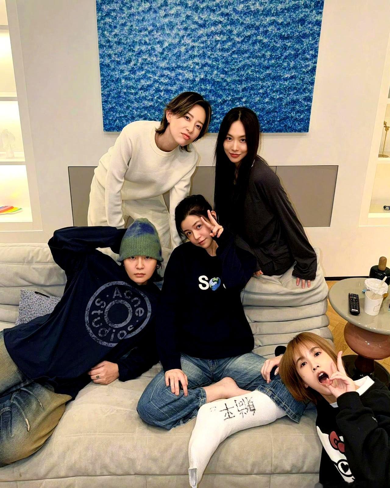 陈妍希在健身房练狠了,右脚跟腱断裂,刚做完手术。 3月30日她跳箱子失误,当晚就进了手术室。现在她脚上打着石膏,还幽默地在上面写了“躺平”两个字,发文说该练新英雄了。 杨丞琳、周笔畅、李斯丹妮和王霏霏跑去家里看她。大家穿得都很松垮,围在沙发边拍照。杨丞琳趴在她腿前,周笔畅挤在身旁。 之前她打羽毛球就伤过腿,这次伤得更重,工作全停了。工作室说已经定了康复方案,现在她出门基本靠操作电动轮椅。 生病有朋友陪着,确实暖心。你们最近一次和老友聚会是什么时候?