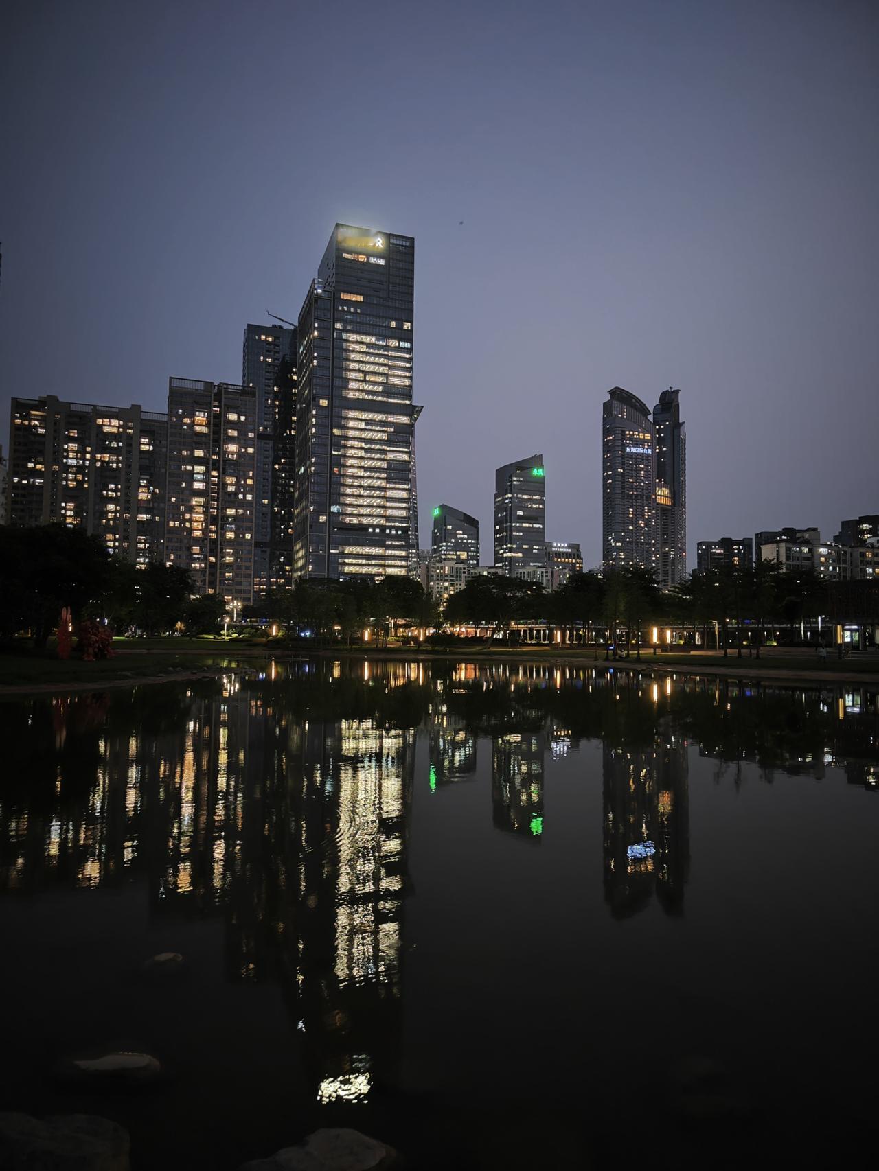 今天晚上路过深圳新香蜜湖,2026年APEC会议将在这里举行。这栋楼是深圳香蜜湖国际会议交流中心宾馆,现在已经开始亮灯了。从香蜜湖公园这个角度望去,夜色璀璨。远处就是深圳最高摩天楼平安国际金融中心,深圳双地标同框。未来,这片城区将打造为深圳新金融城区,现在这里还是繁忙的工地,深圳香蜜湖公园正在建设中,南区的金融博物馆也即将建成,新金融城区初见雏形,这里又将是深圳一片高颜值城区,未来值得期待。