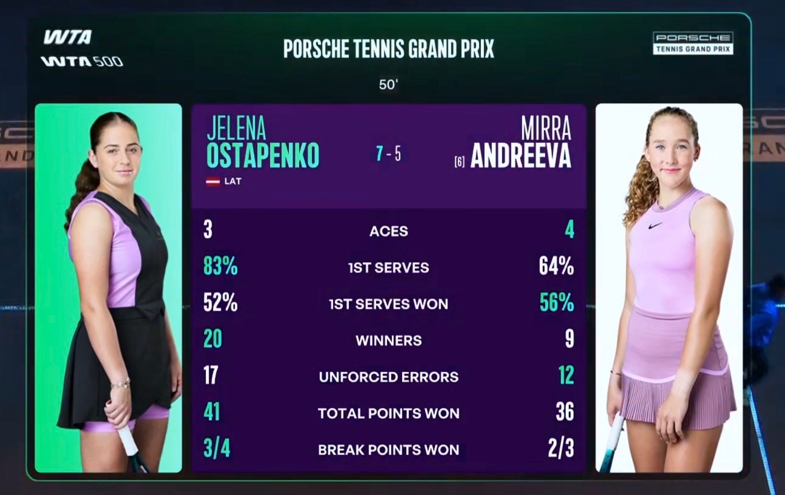 奥斯塔彭科第一盘动力满满,20次制胜分逆转小米辣斯图加特500赛