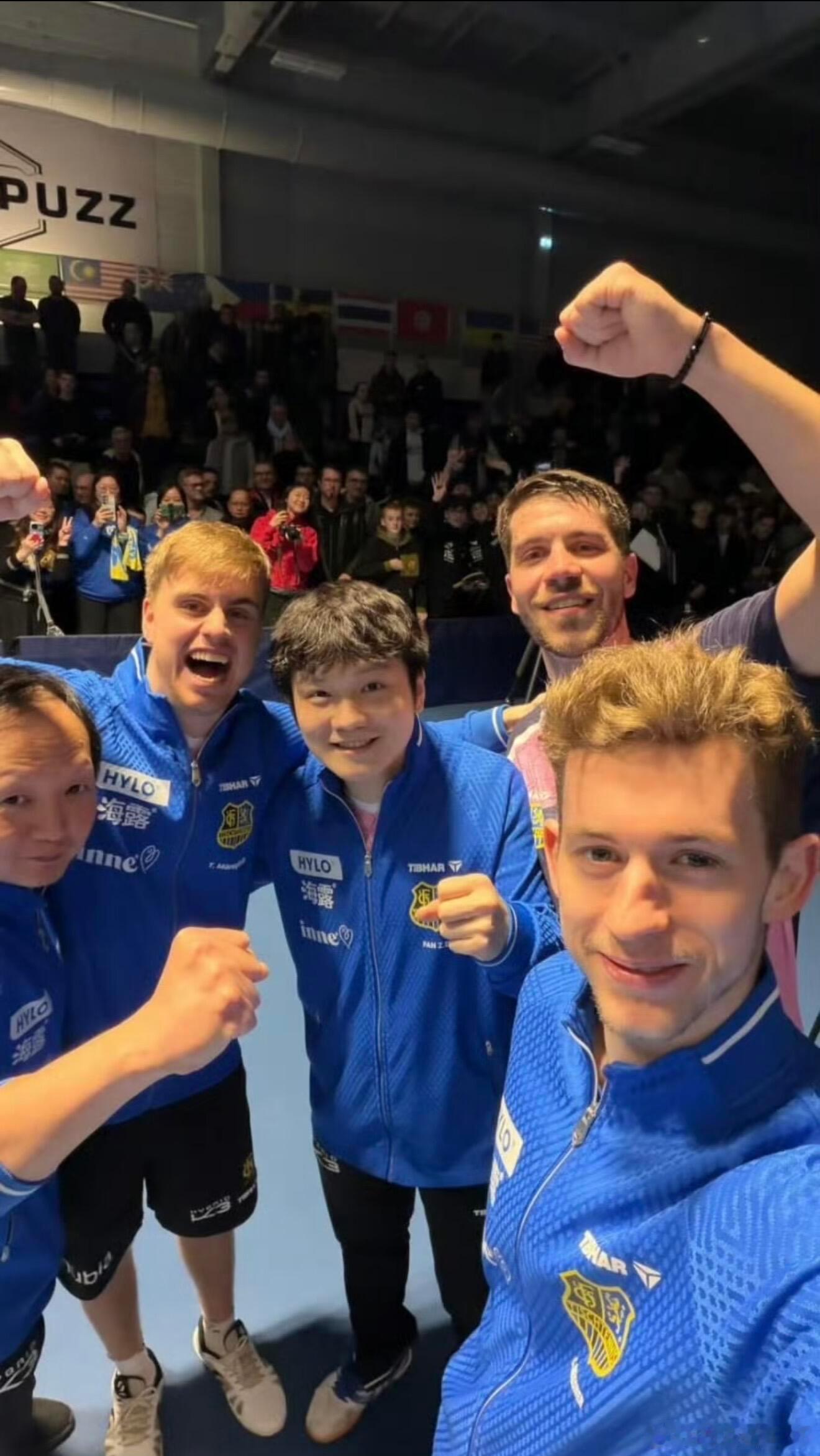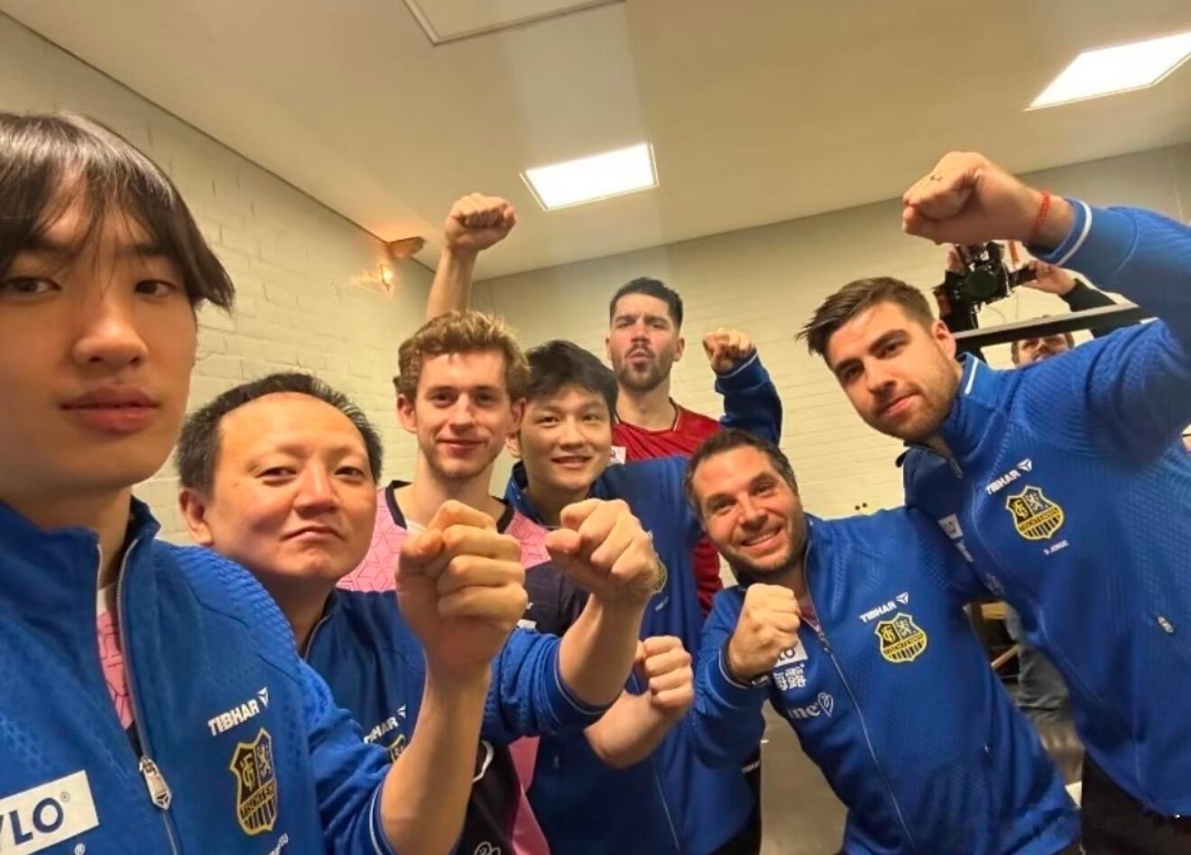 樊振东与萨尔团队的每一帧胜利定格。蓝色战袍凝聚着每一份热爱与坚守,并肩作战的时光,是彼此最坚实的铠甲。