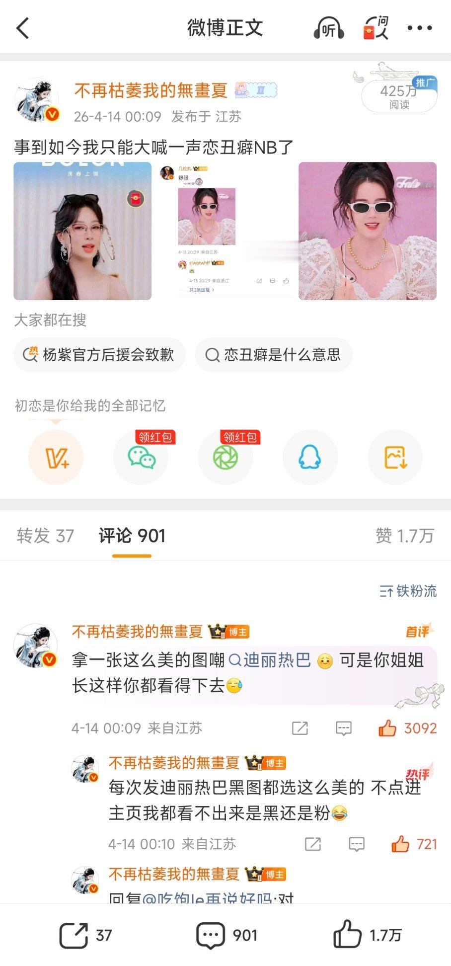 【不限⭕抽奖】嘴过迪丽热巴别来带杨紫官方后援会给迪丽热巴道歉 🧱抽18.88