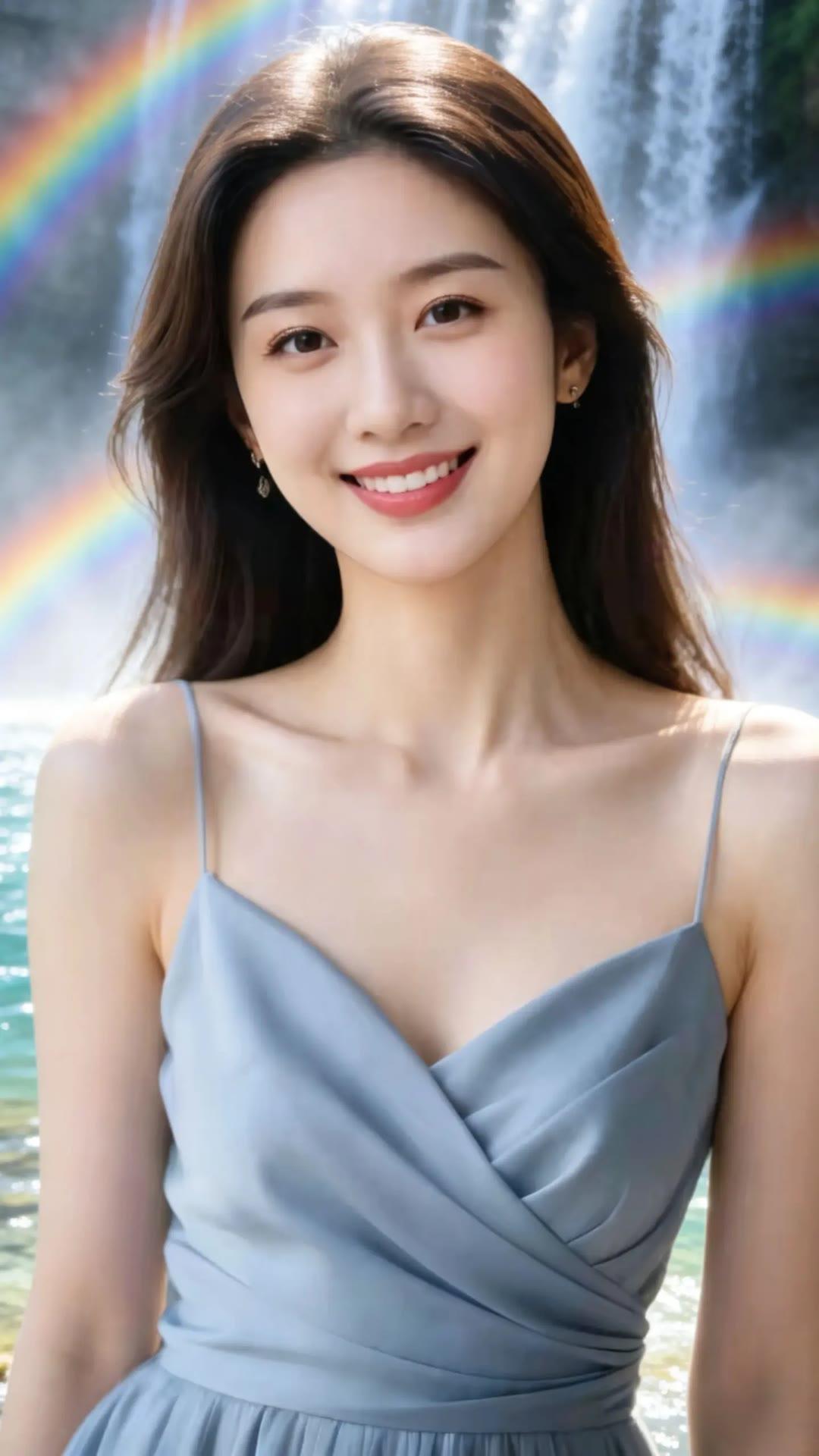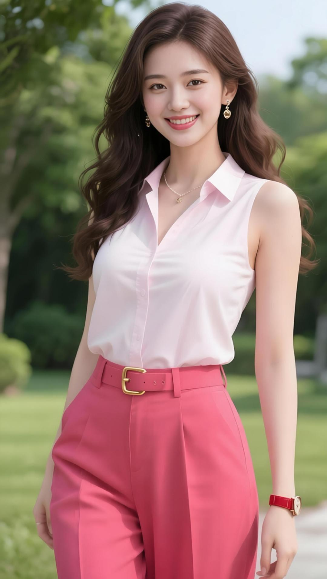 甜美少女风,粉色小熊连衣裙,微笑的阳光女孩