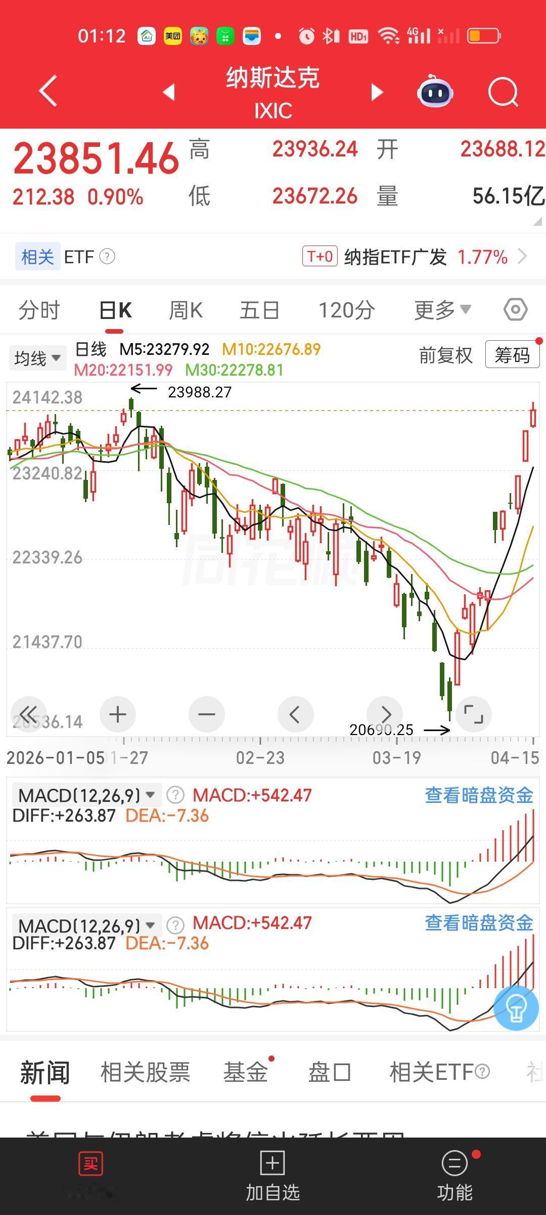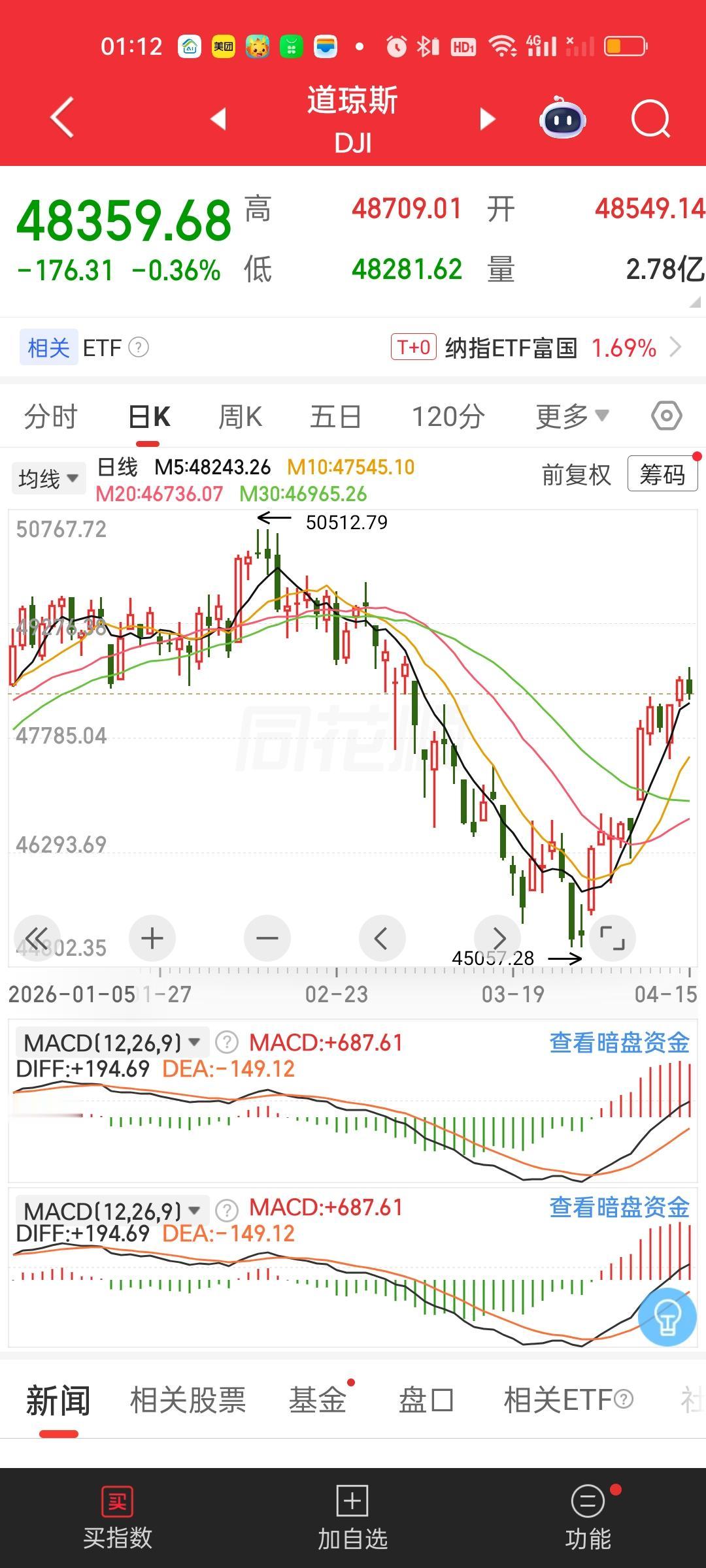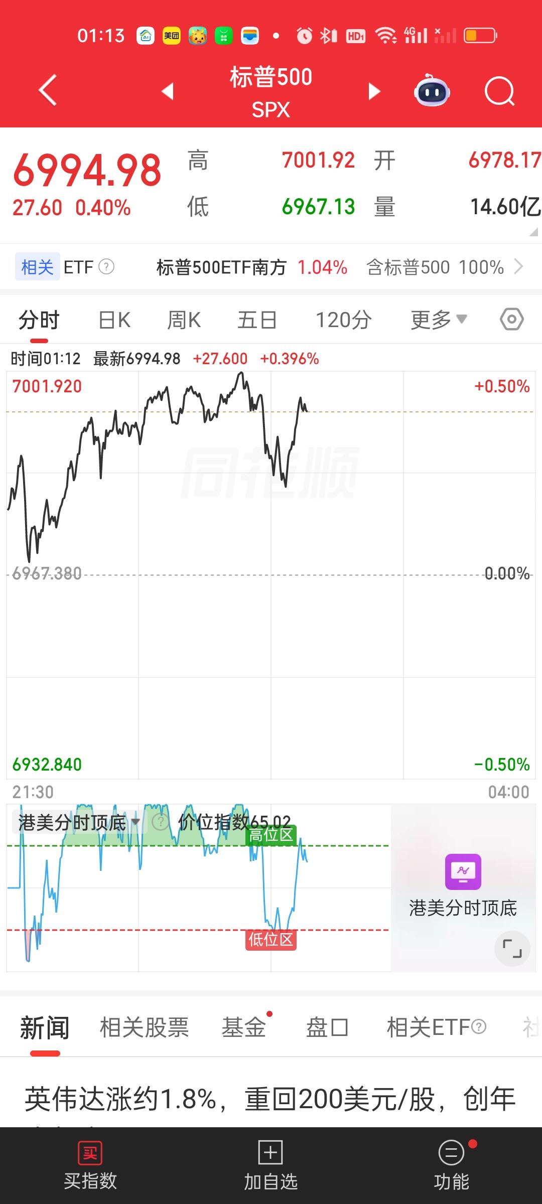 很明显纳指和标普的表现要明显强于道指。标普今天的高点距离前高就差0.36点,纳指今天高点距离前高也只有52点。这两个指数今天不破也会破。但道指距离前高还差1800多点,走的明显要弱势很多。