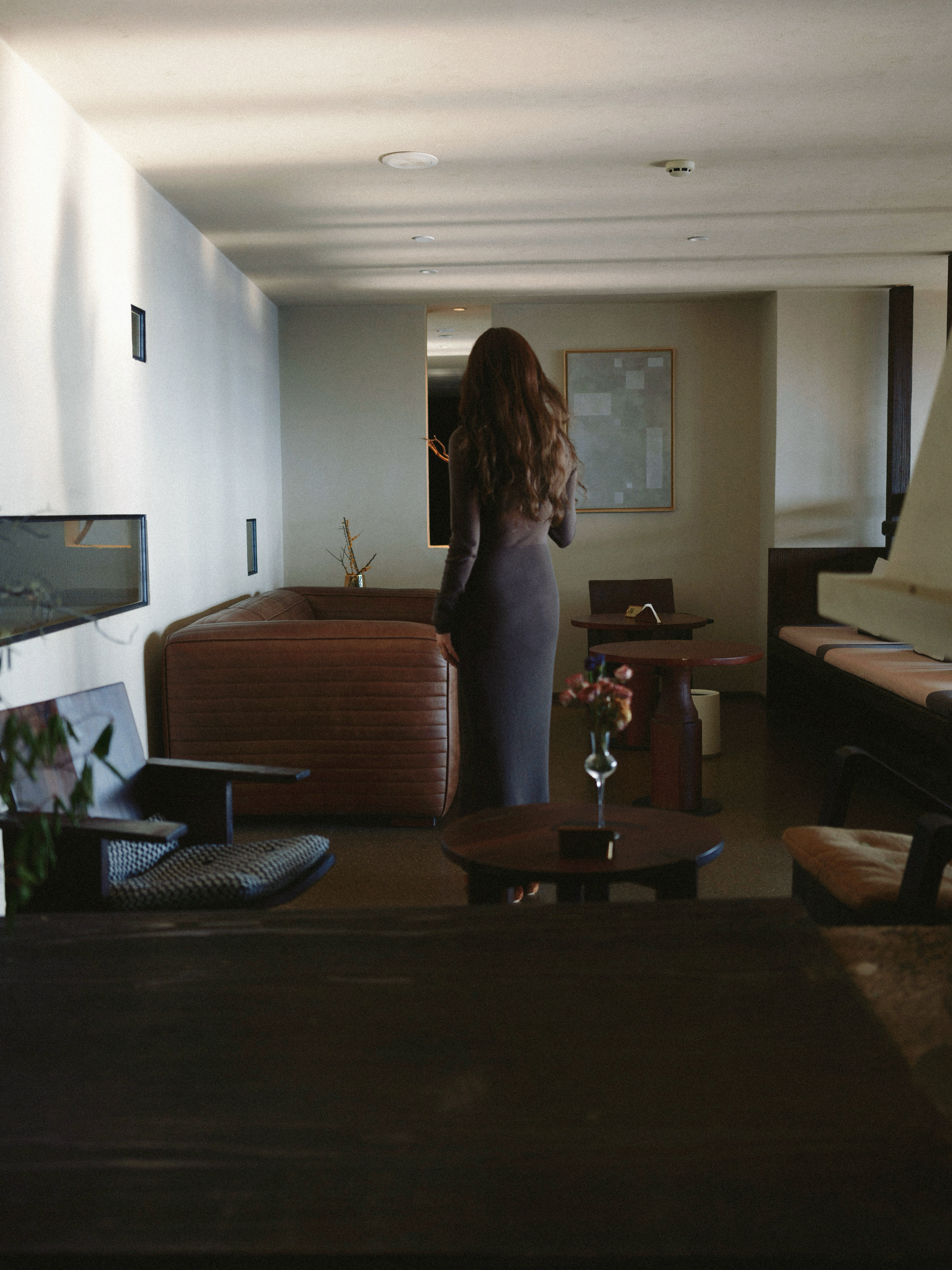 她把侧脸藏进风的拐角,只留背影给菜园,给溪流,给青砖墙上垂落的藤蔓~灰裙
