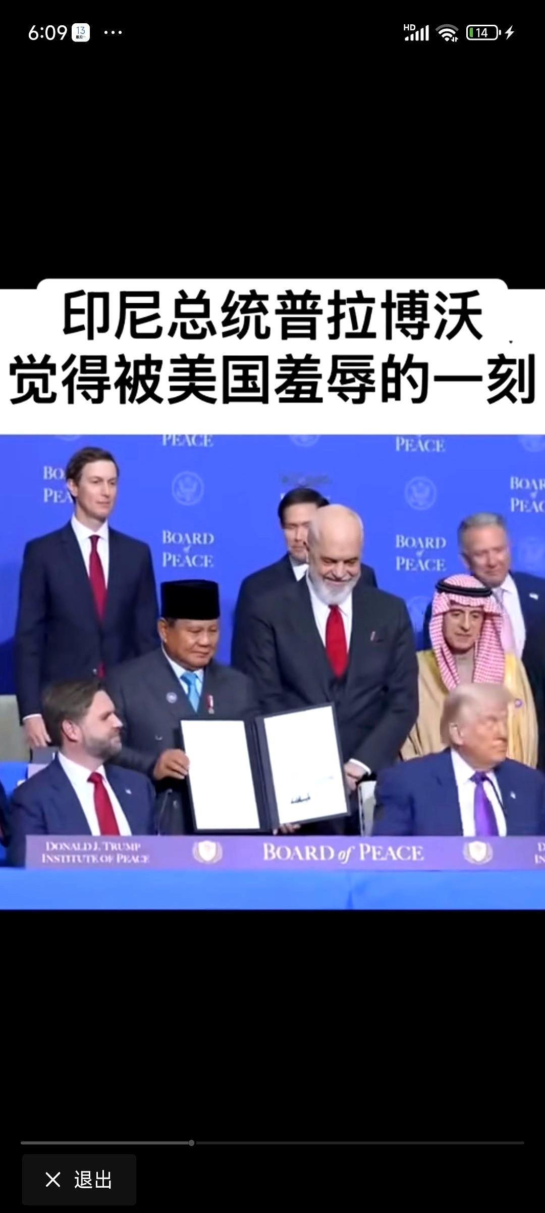 那个签约视频,真是看一次血压高一次。 美国总统坐着,印尼总统站着。中间一张大桌子,闪光灯咔咔地响。 按规矩,俩人得一块儿举着文件,给镜头拍个照。 结果,美国总统动都没动,身子往后一靠,单手就把那个文件夹,像递菜单一样,顺着桌面滑了过去。 印尼总统就那么站着,手里攥着那个文件夹。他看看坐着的美国总统,又看看旁边同样坐着的美国副总统。 全场,只有他一个人站着。 最绝的还不是这个。 这事在印尼国内,水花都没有。反倒是咱们这边,网友吵翻了天。 你说,这到底是不懂外交礼仪,还是压根就没把人放在眼里?