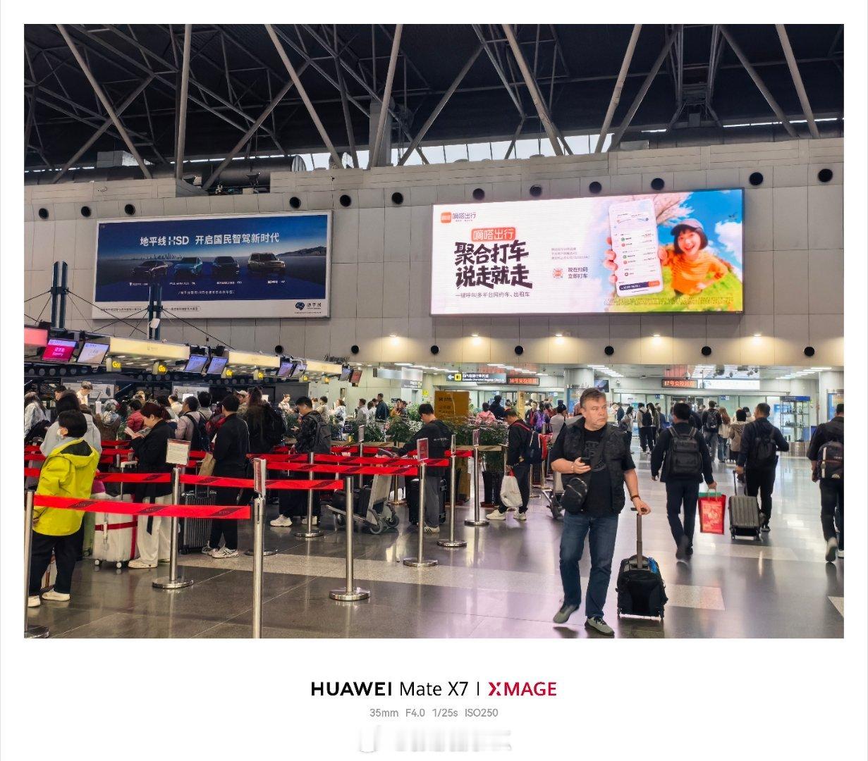 早上6点的首都机场,挺繁忙的。发现地平线HSD的广告还在,已经好几个月啦!