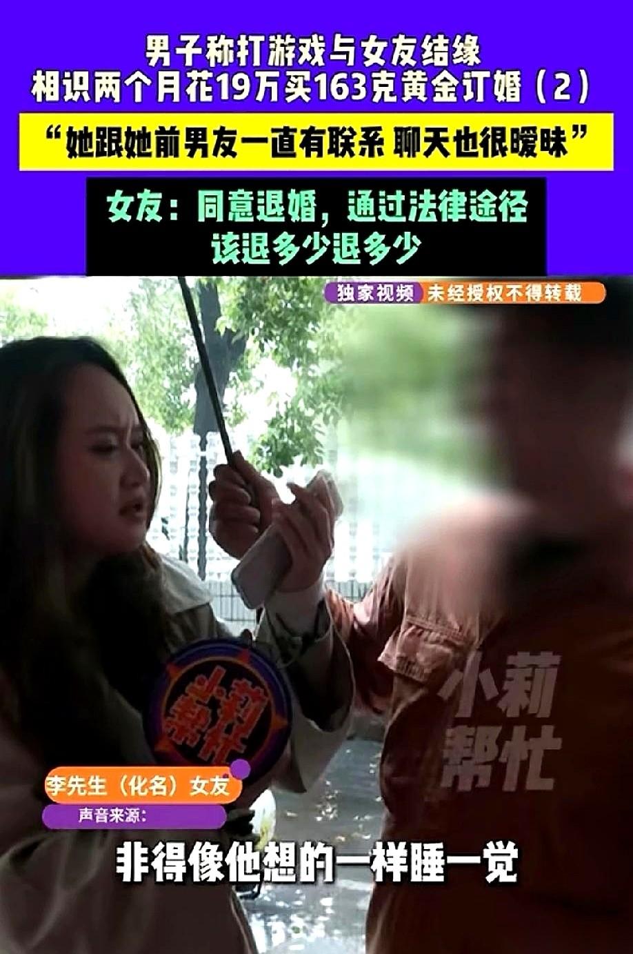 游戏里认识俩月,女友一句“订婚吧”,小伙二话没说,掏出19万买了163克黄金。 金子一到手,人立马就跟换了魂似的。信息不回,电话敷衍,之前那个嘘寒问暖的小甜心,直接把他当成了空气。 小伙一开始还以为是自己想多了,直到无意间瞥了一眼女友的手机。 屏幕的光映在他脸上,手指往上划,一行行“宝贝”“想你”的聊天记录,对方却不是他。他再往下翻,甚至翻到了女友和别的男人同住一家酒店的记录。 他拿着手机的手,骨节捏得发白。 电话拨过去,他想讨个说法。结果对面不慌不忙,甚至倒打一耙,直接挂了电话,反手就报了警,说他威胁要“卸了她”。 警察一来,事情更有意思了。 小伙以为只是变心,结果警察调出来的白纸黑字告诉他,从头到尾,他爱上的这个人根本就不存在——名字是假的,连出生年份都从02年硬生生变成了91年,整整大了11岁。 面对铁证,女方终于开了口。 她说,名字有两个是因为父母离异。 她说,跟“哥哥”住酒店只是为了通宵打游戏。 小伙彻底炸了,冲着她吼,让她把黄金还回来。 女方却异常冷静,对着警察一摊手:“让他走法律程序,恐吓我没用。” 现在,黄金还不一定能要回来,小伙自己倒因为暴力恐吓,先背上了一个案底。 说白了,这就是一场精准的围猎,一个用爱情当诱饵,一个用真金白银咬了钩。