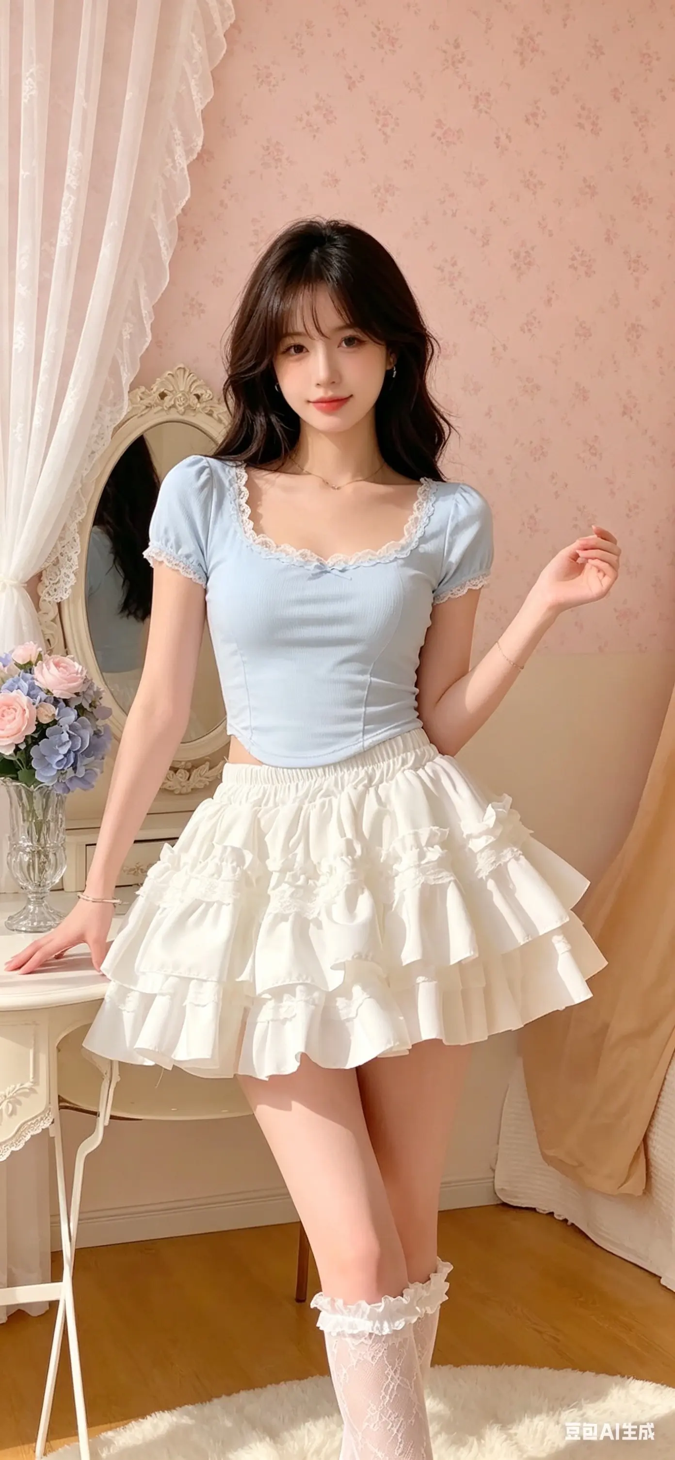 粉色上衣配短裙,那清新感简直绝了!就像有甜妹穿粉上衣搭白短裙,配色清爽减龄,软萌