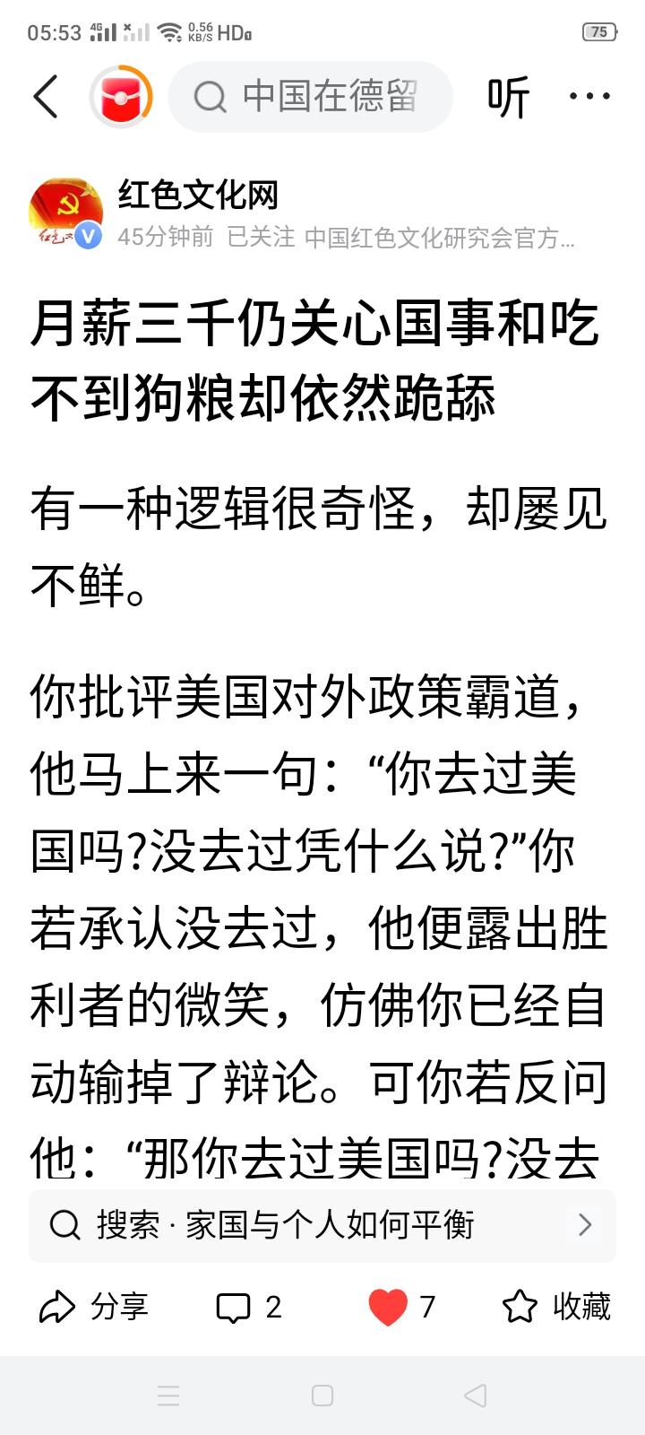 我评论区总有人说你一个月薪三千的,美国打伊朗关你何事?中国发射“神舟二十二号”关你何事?中国造004航母关你何事…… 现在红色文化网替我回答了这些人的问题,还反问这些人你都吃不到美国的狗粮了还在跪舔这是为了什么? 我们中间总有这么些人放着堂堂正正的中国人不当,非要想尽一切办法跪求别国的一点施舍,这种饭你能吃多久?尾巴摇的再勤快,特朗普会再拨16亿吗?