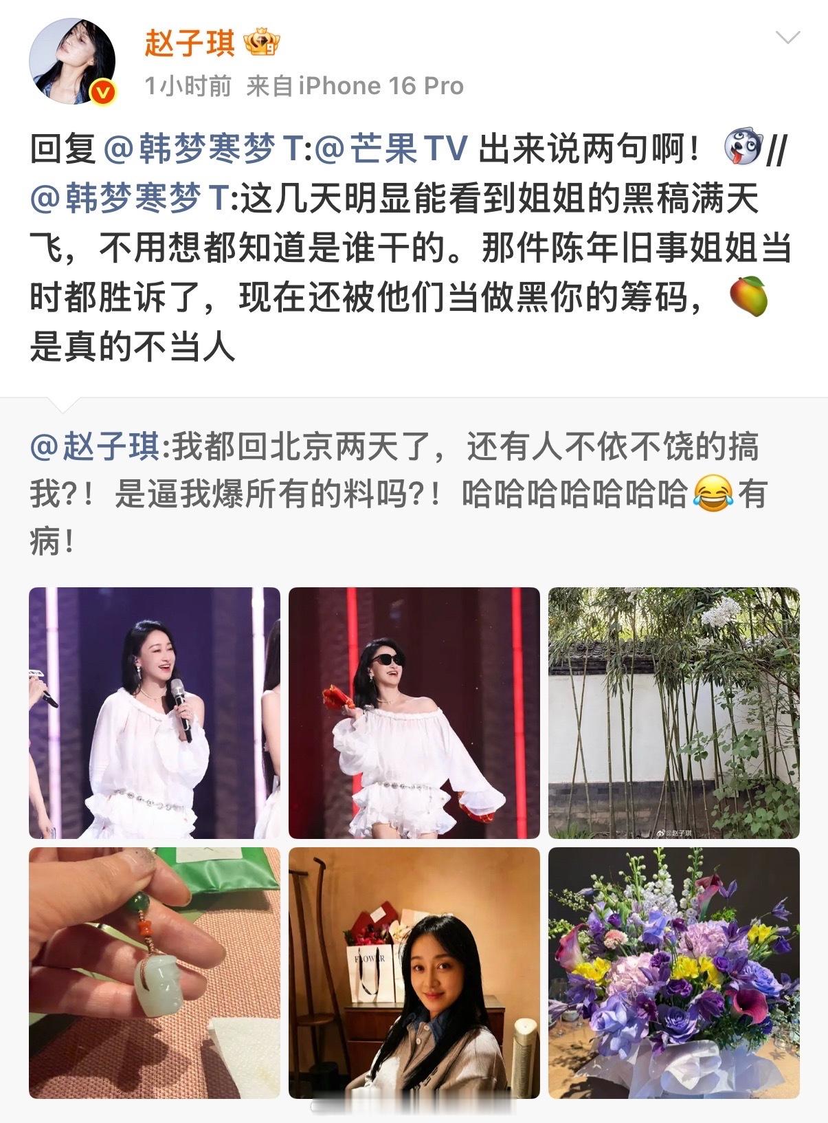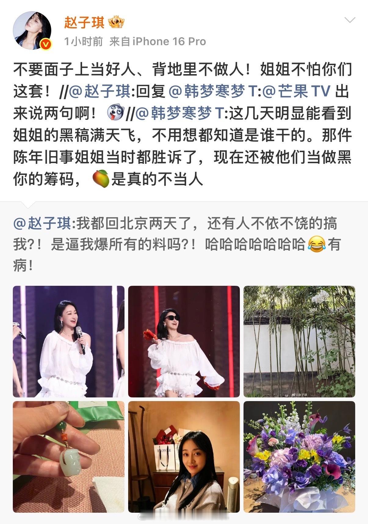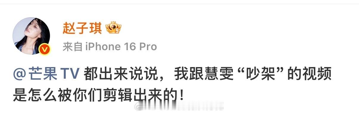 赵子琪连发六条微博喊话赵子琪说与张慧雯吵架是被剪辑的