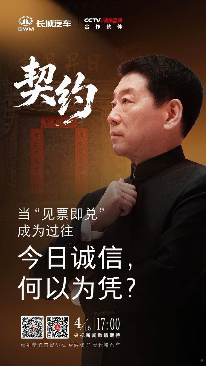 魏建军力排众议,采纳网友高票建议,将全新旗舰SUV定名为“长城H10”,兑现网友定名权,此次征名互动量极高,热度超哈弗大狗。他坚持尊重民意,契合“一个长城”全球化战略。4月16日17:00,长城汽车将在平遥古城携手央视新闻直播,探寻票号商道,致敬契约精神。长城汽车魏建军征名定了长城H10魏建军力排众议兑现网友定名权