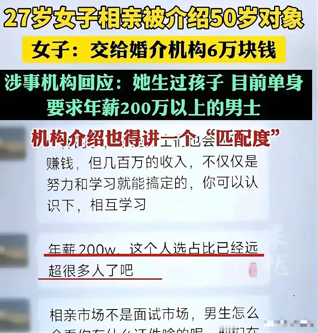 谁能想到杭州婚恋圈这么离谱?27岁离异带娃女生征婚,到底哪来的底气狮子大开口? 年纪轻轻离异带娃,去婚介找对象,直接要求男方有车有房、高薪优质、长相帅气,一口气交了6万中介费! 满心期待优质帅哥上门,结果等来全是大龄中年大叔,条件差了十万八千里。 现实太扎心:年入百万的优质男人,压根不用逛婚介,身边从来不缺年轻单身姑娘,怎么会轻易选择离异带娃的你? 一边是女生不切实际的幻想,一边是婚介只管收钱不管匹配,妥妥双向荒唐,三观都被震碎了! 到底是女生太天真,还是婚介太黑心?这样不匹配的择偶要求,真的有人会买单吗?