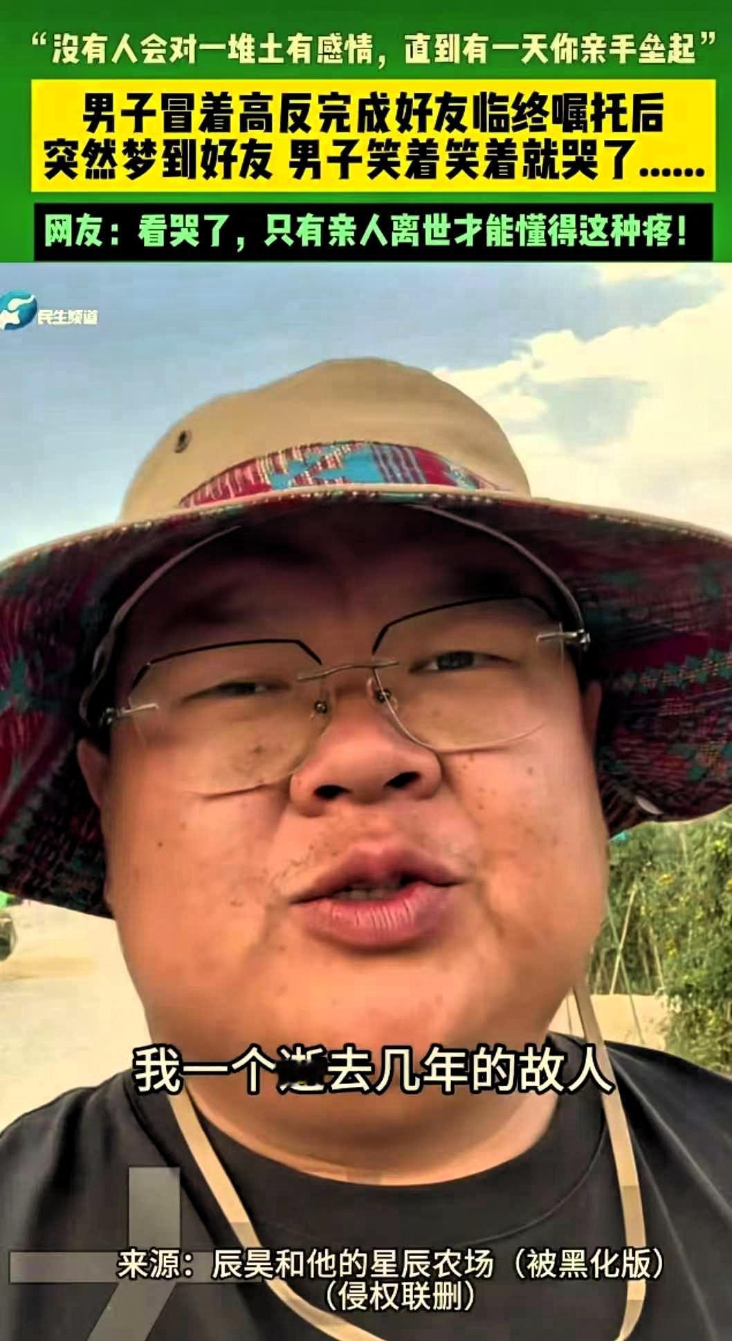 “看哭了!”云南,一男子晚上梦到逝去几年的故友,在梦里一直说自己冷,他先是有些哭笑不得,可回过神来,眼泪却止不住地往下流。 两人是大学同学,相识多年,感情一直很深厚。平日里虽然相隔千里,却时常联系,见面时也总爱互相开玩笑,关系十分亲近。后来好友查出重病,因为自幼跟着爷爷奶奶长大,亲人相继离世,身边没有其他依靠,便把身后事全都托付给了他。 让他格外动容的是,好友不仅提前准备好了所有费用,还体谅他工作繁忙,特意在遗嘱里写明,允许他在三年内帮忙下葬。甚至考虑到他以后的生活,在自己的公司为他留了职位,再三叮嘱合伙人多加照顾。离世前,好友还把骨灰烧成瓷盘,既特别又方便携带。 男子把这只瓷盘在家中放了整整三年,直到期限将至,才背着氧气瓶来到西藏,按照好友的心愿,将瓷盘安葬在海拔四千米的山地里。 如今好友托梦说冷,他心里满是心酸与思念。这段跨越生死的情谊,没有华丽的言语,却处处透着真诚与担当。朋友之间最难得的,就是这份毫无保留的信任,和说到做到的坚守。 而好友留下的那句“再忙也要好好吃饭”,更是简单又实在。很多人为了生活拼命奔波,常常忽略身体健康,等到失去才追悔莫及。 其实人生不必追求太多轰轰烈烈,平安健康,身边有真心相待的人,就已经足够珍贵。这样平淡又真挚的情义,最能打动人心。 这样真诚的朋友,是不是也让你心里一暖?